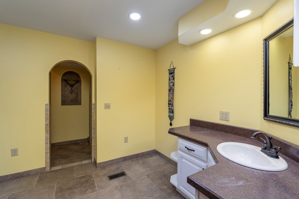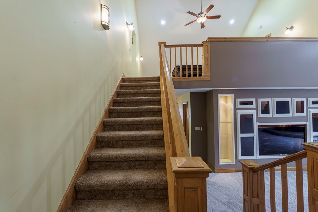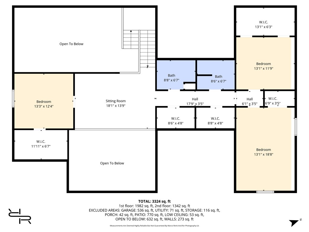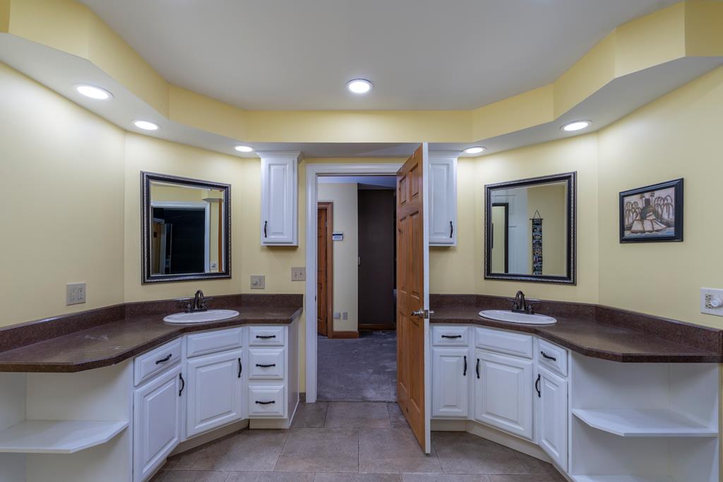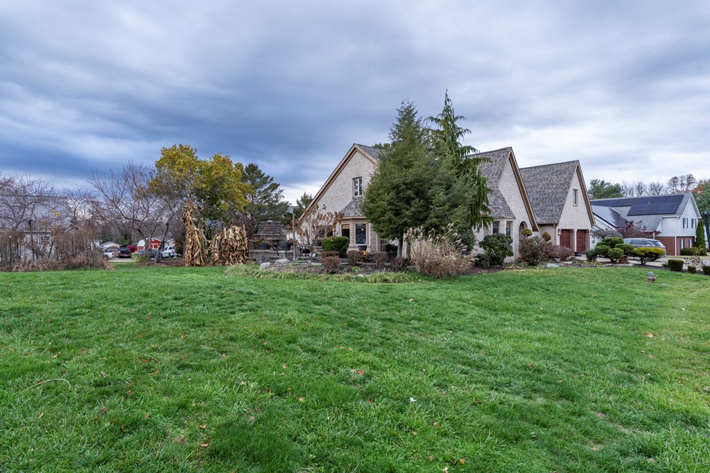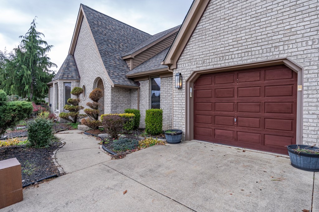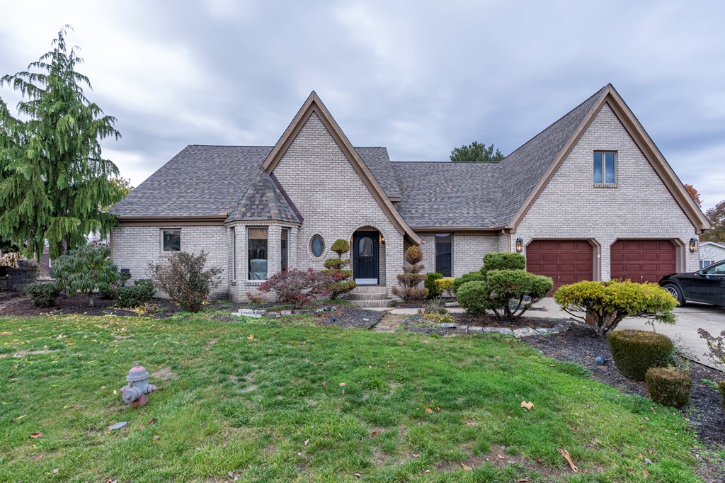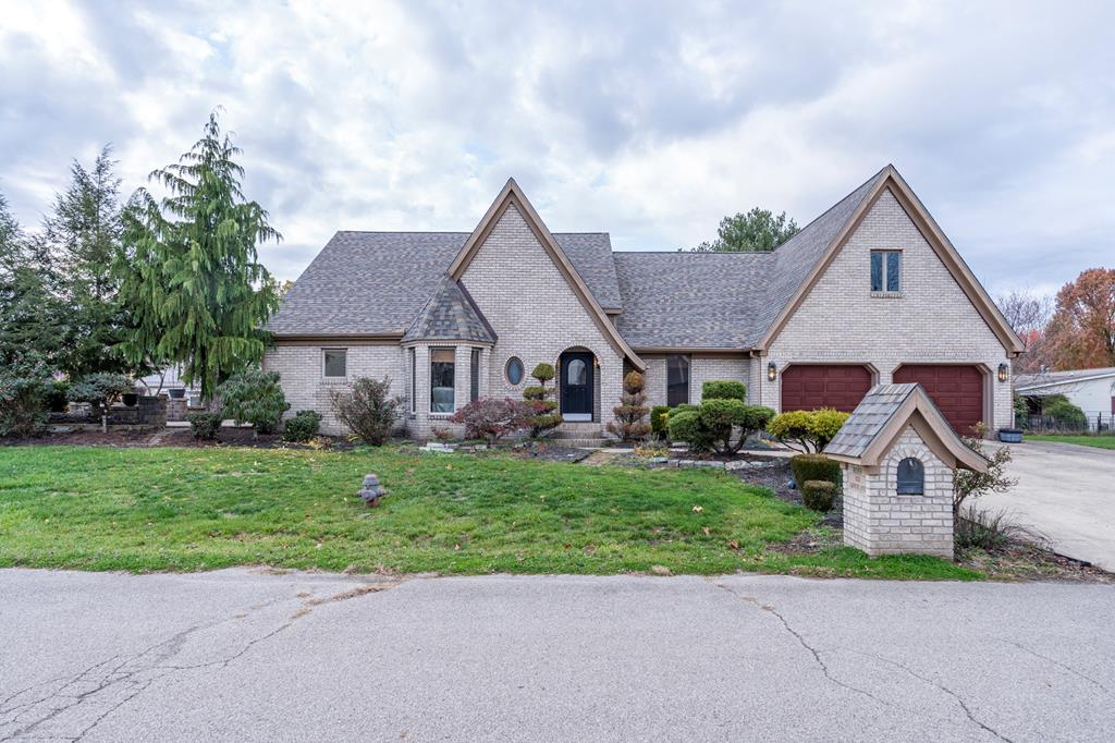 Envision this custom home that combines the charm of a story and a half layout with the luxury of extra space. Timeless all brick exterior with an interior emphasizing modern design and functionality. Abundant of natural light flows through large windows. A dramatic vaulted ceiling in family room and dining room creating a bonus area upstairs. The main floor flows effortlessly for great entering with glass doors leading to side patio. Making the most of the expansive 2 lots. Side patio has a custom built fireplace and hook ups for a hot tub. Main floor laundry/pantry with half bath. First floor primary suite with custom showers and double sinks. Upstairs has bonus room overlooking the great room below. There are 3 spacious bedrooms with large closets and 2 generous full bathrooms. 2 car attached garage has extra storage rooms in back. New roof shingles in 2024.