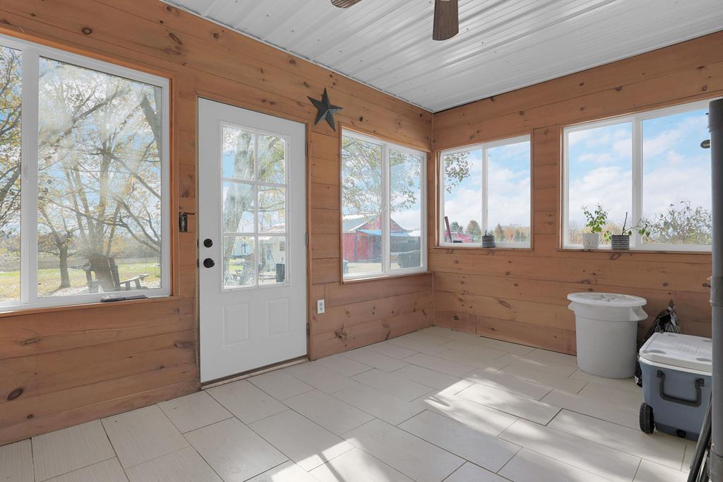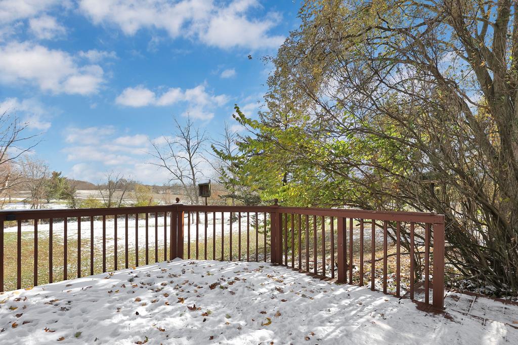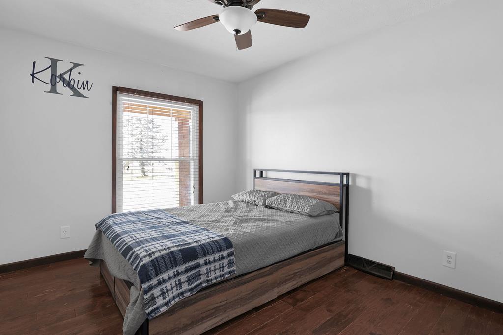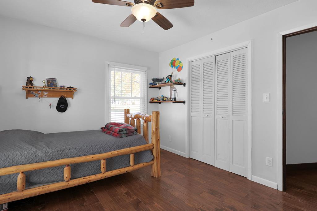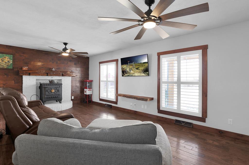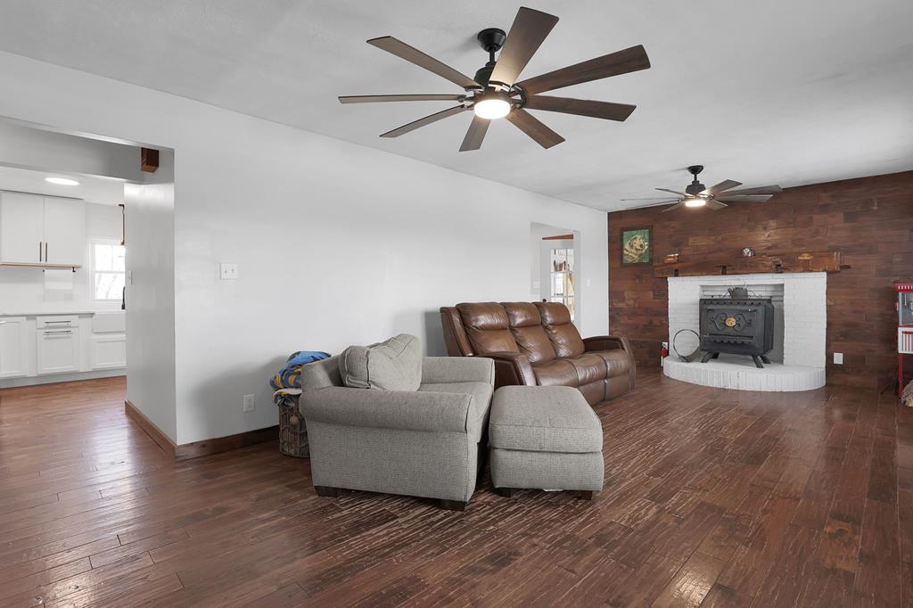 Mini Farm on a Desirable Dead-End Road! Welcome home to this well-maintained ranch featuring numerous updates and charm throughout. Enjoy relaxing on the large front porch, then step inside to a cozy family room complete with a wood-burning stove and beautiful hardwood floors that flow throughout the main level. The fully remodeled kitchen is a chef’s dream, showcasing new cabinets, granite countertops, a crisp white backsplash, and spacious pantry cabinets for abundant storage. The updated bathroom offers a spa-like retreat with double sinks, a large tiled shower, and a free-standing soaking tub. The main floor features three comfortable bedrooms, plus a bonus room upstairs ideal for an office or additional bedroom or just a fun hangout room. The finished walk-out basement adds even more living space, including a second family room, an additional bedroom, and a brand-new full bath with a walk-in tiled shower. You’ll also find a large laundry area and direct access to the outdoors. Ste