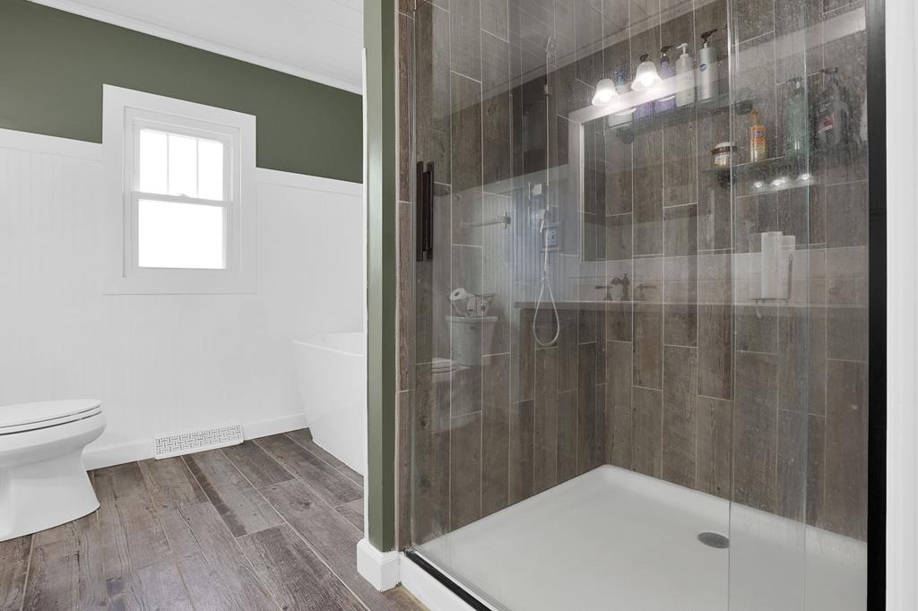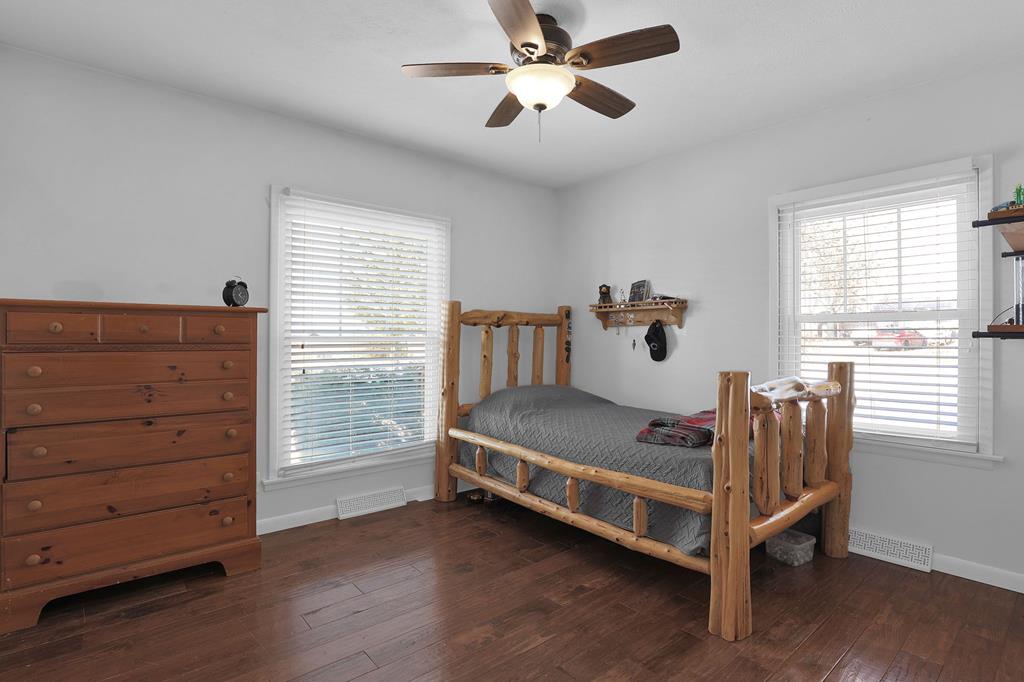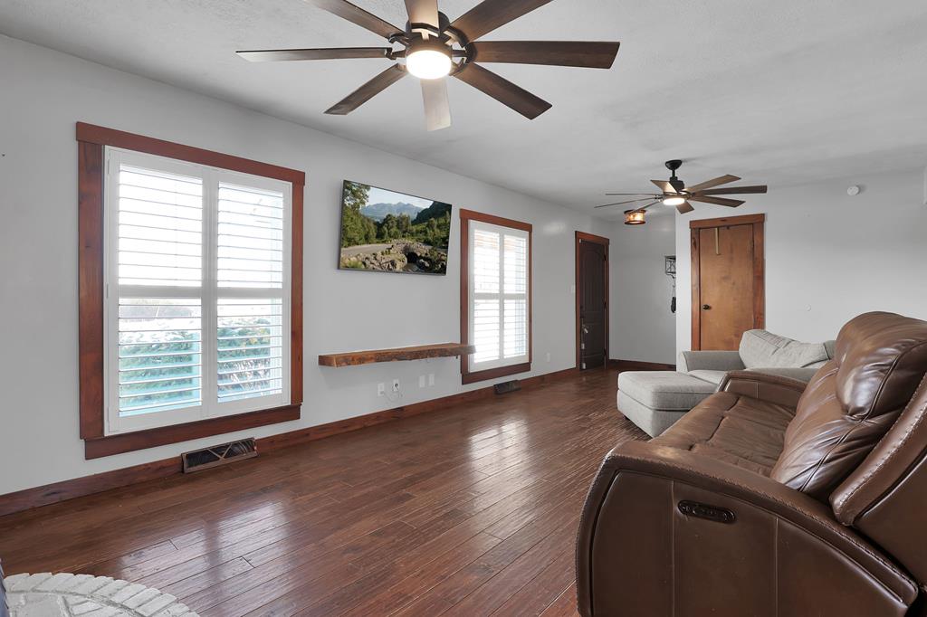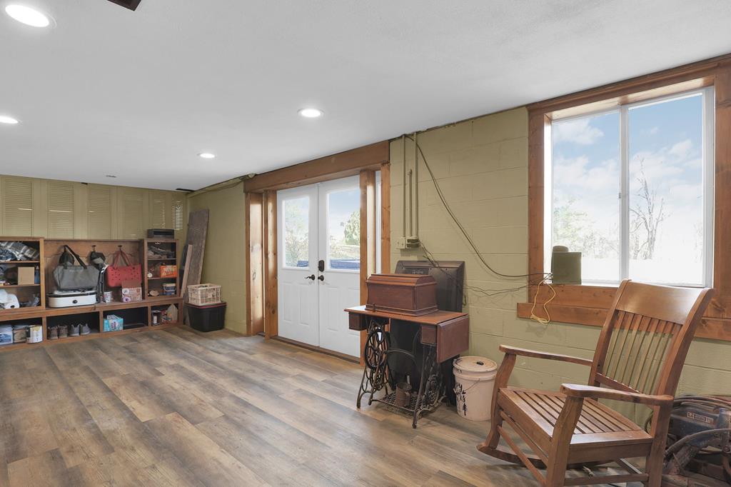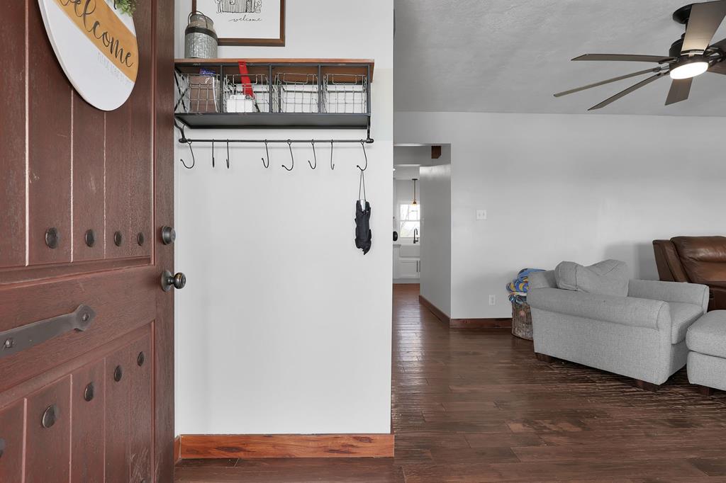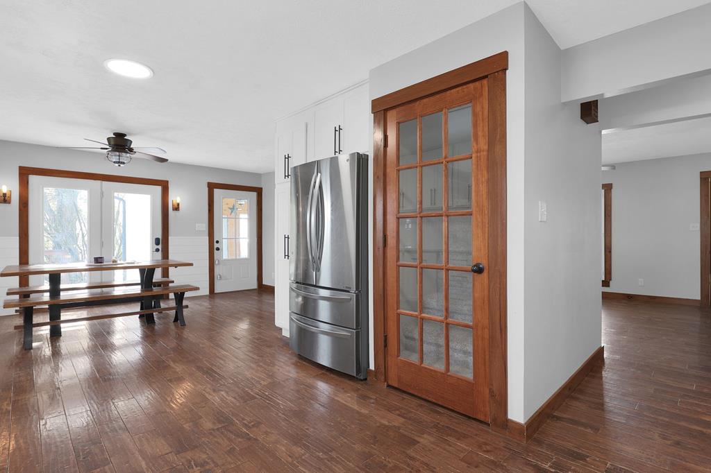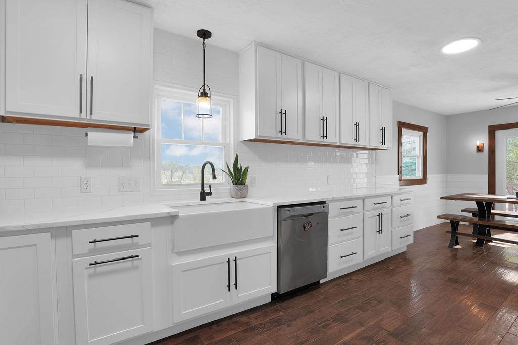 Mini Farm on a Desirable Dead-End Road! Welcome home to this well-maintained ranch featuring numerous updates and charm throughout. Enjoy relaxing on the large front porch, then step inside to a cozy family room complete with a wood-burning stove and beautiful hardwood floors that flow throughout the main level. The fully remodeled kitchen is a chef’s dream, showcasing new cabinets, granite countertops, a crisp white backsplash, and spacious pantry cabinets for abundant storage. The updated bathroom offers a spa-like retreat with double sinks, a large tiled shower, and a free-standing soaking tub. The main floor features three comfortable bedrooms, plus a bonus room upstairs ideal for an office or additional bedroom or just a fun hangout room. The finished walk-out basement adds even more living space, including a second family room, an additional bedroom, and a brand-new full bath with a walk-in tiled shower. You’ll also find a large laundry area and direct access to the outdoors. Ste