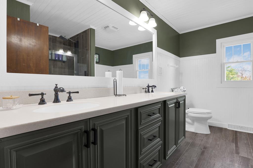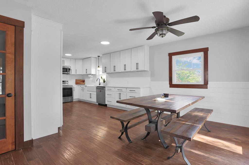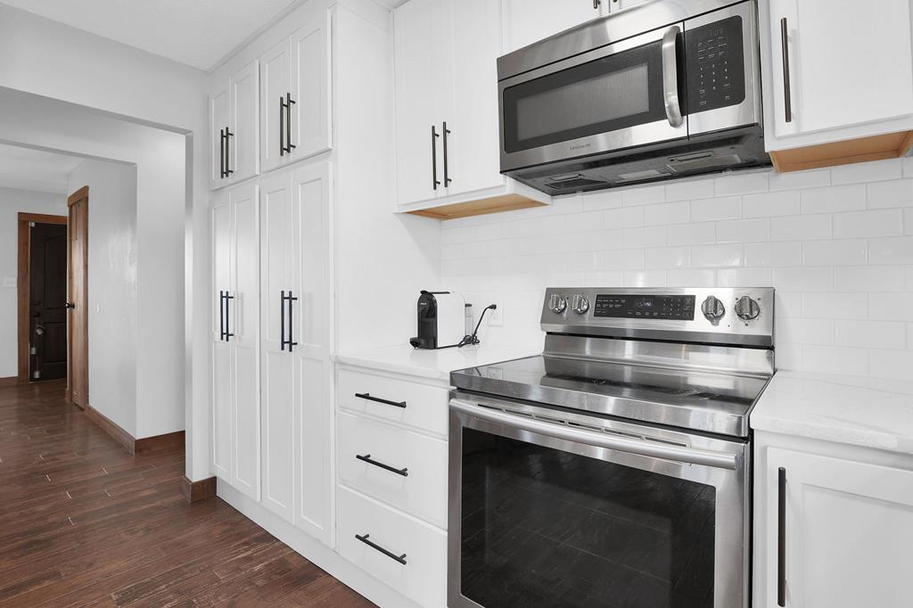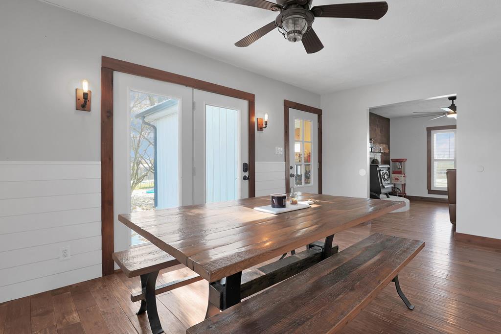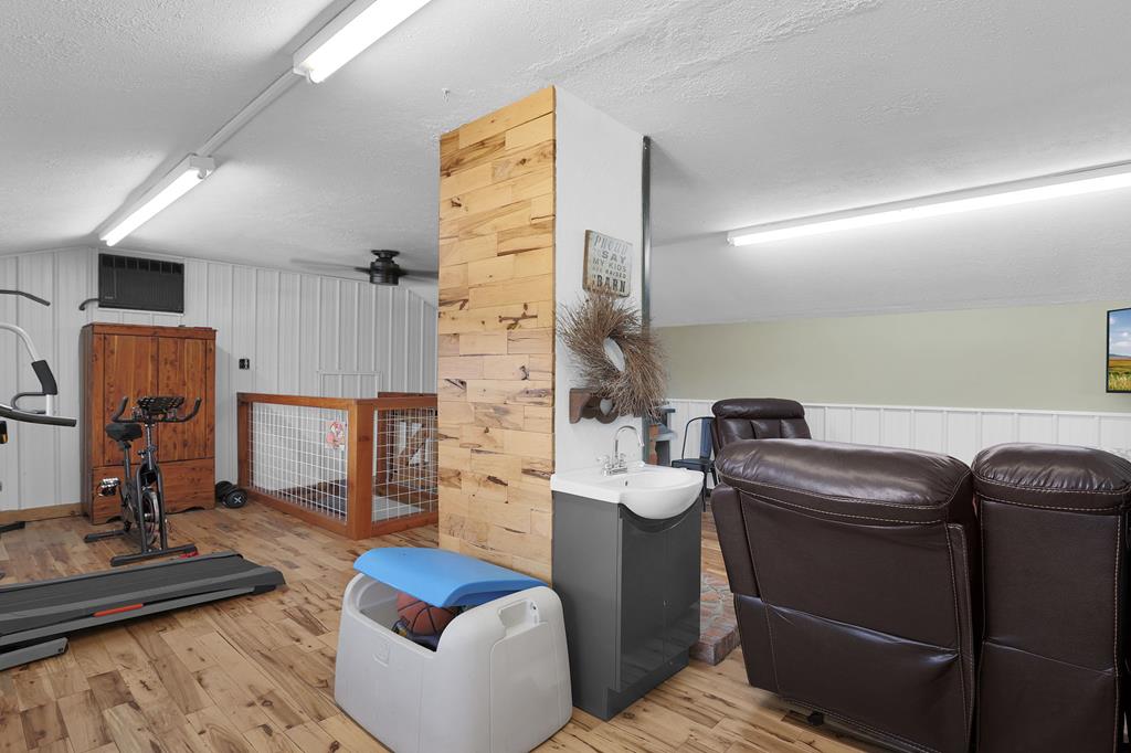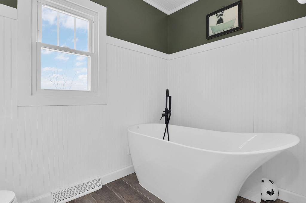 Mini Farm on a Desirable Dead-End Road! Welcome home to this well-maintained ranch featuring numerous updates and charm throughout. Enjoy relaxing on the large front porch, then step inside to a cozy family room complete with a wood-burning stove and beautiful hardwood floors that flow throughout the main level. The fully remodeled kitchen is a chef’s dream, showcasing new cabinets, granite countertops, a crisp white backsplash, and spacious pantry cabinets for abundant storage. The updated bathroom offers a spa-like retreat with double sinks, a large tiled shower, and a free-standing soaking tub. The main floor features three comfortable bedrooms, plus a bonus room upstairs ideal for an office or additional bedroom or just a fun hangout room. The finished walk-out basement adds even more living space, including a second family room, an additional bedroom, and a brand-new full bath with a walk-in tiled shower. You’ll also find a large laundry area and direct access to the outdoors. Ste