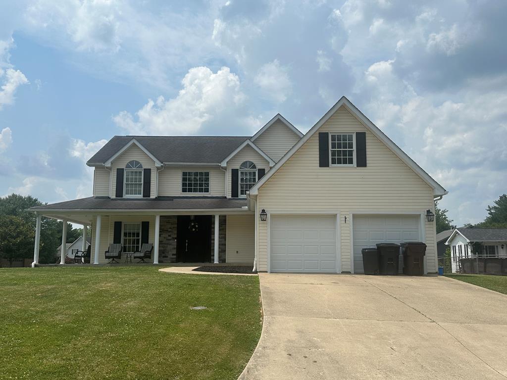 This Gorgeous 2 story home with 4 bedrooms, 2 1/2 baths and wrap around porch is situated on a Lg. corner lot in a very desirable neighborhood!! This home is perfect for a large family with its spacious open concept floorplan featuring, formal dining room, 1st floor laundry, stone accent walls and bamboo flooring. You will love the Custom Gourmet Kitchen with commercial grade Electrolux appliances (including washer and dryer), pot filler, microwave drawer, granite countertops, lg. island and beautiful Amish made wood cabinets. The 2nd floor primary bedroom w/ensuite boasts a newly renovated tile walk-in shower. Other amenities include bonus room over garage for 4th bedroom, game room etc., and partially finished full basement w/bar and sump pump. Make sure to check this one out! Due to recent deduction, home is being sold as is.