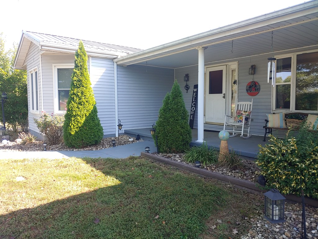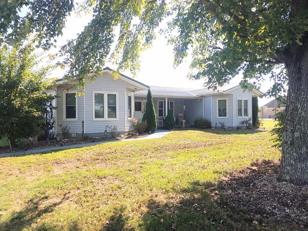 Welcome to this beautiful property consisting of 8.378 level acres and only five minutes to town and other amenities! This well cared for residence offers a unique and functional floor plan, featuring 3 spacious bedrooms, including a private owner’s suite, 2 full bathrooms, an inviting kitchen with stainless steel appliances, dining room, and a large living room. Step outside to enjoy the peaceful setting while watching the deer pass by from either the covered front porch or the covered back deck. Outdoors you will also find everything you need and more – a 40’x24′ detached garage with a shop and an attached 40’x15′ lean-to, and a separate storage building. Heating and air were updated recently. Whether you are looking for space to spread out, a place for animals, or just tranquil home close to town, this property offers it all.