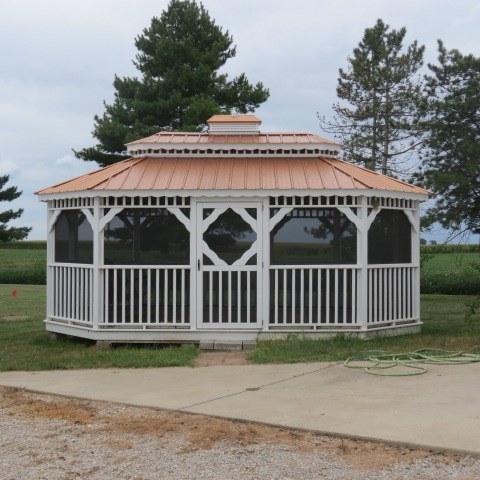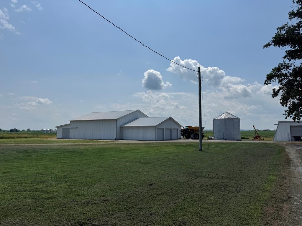 Beautiful Farmhouse featuring 4 bedrooms, 2 baths and 2,774 square ft. You will fall in love with the welcoming living room, spacious eat-in kitchen, and comfy family room. This home offers a first floor bedroom along with full bath and extra-large first floor laundry. Upstairs offers 3 bedrooms plus a 14’5×18 bonus room perfect for a playroom or added storage. An extra feature is the whole house Generac system. Outside you will enjoy the gazebo, 50×52 metal pole building with 3 car garage, & attached barn with electric & water great for 4H livestock plus 2 large overhead doors on the side to accommodate a large camper, boat & trailer. Also, there is a 40×60 steel building that was used as a workshop with air compressor and drive through door on both ends perfect for storing large yard equipment. There is also a grain bin. Approximately 50 acres tillable.