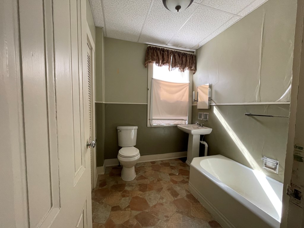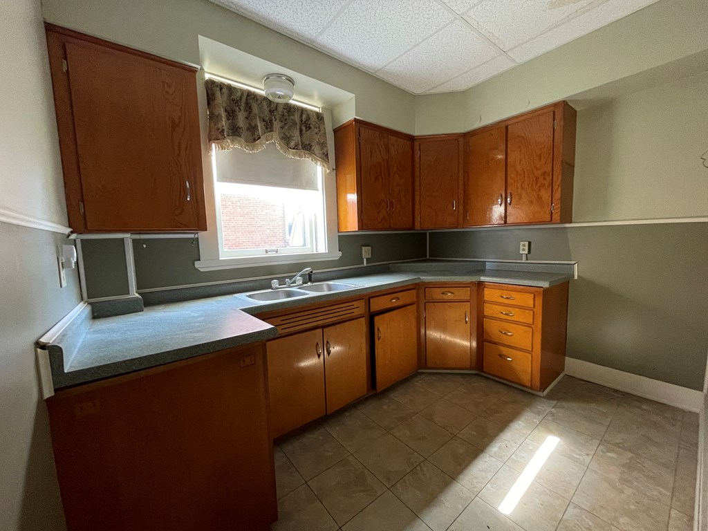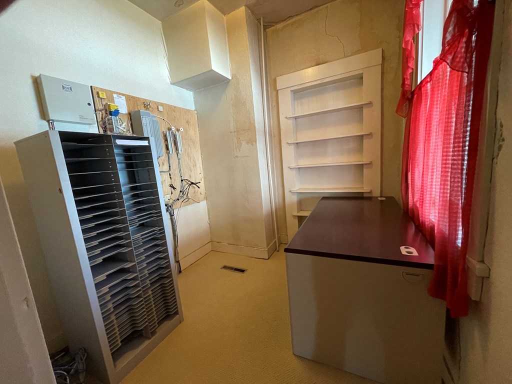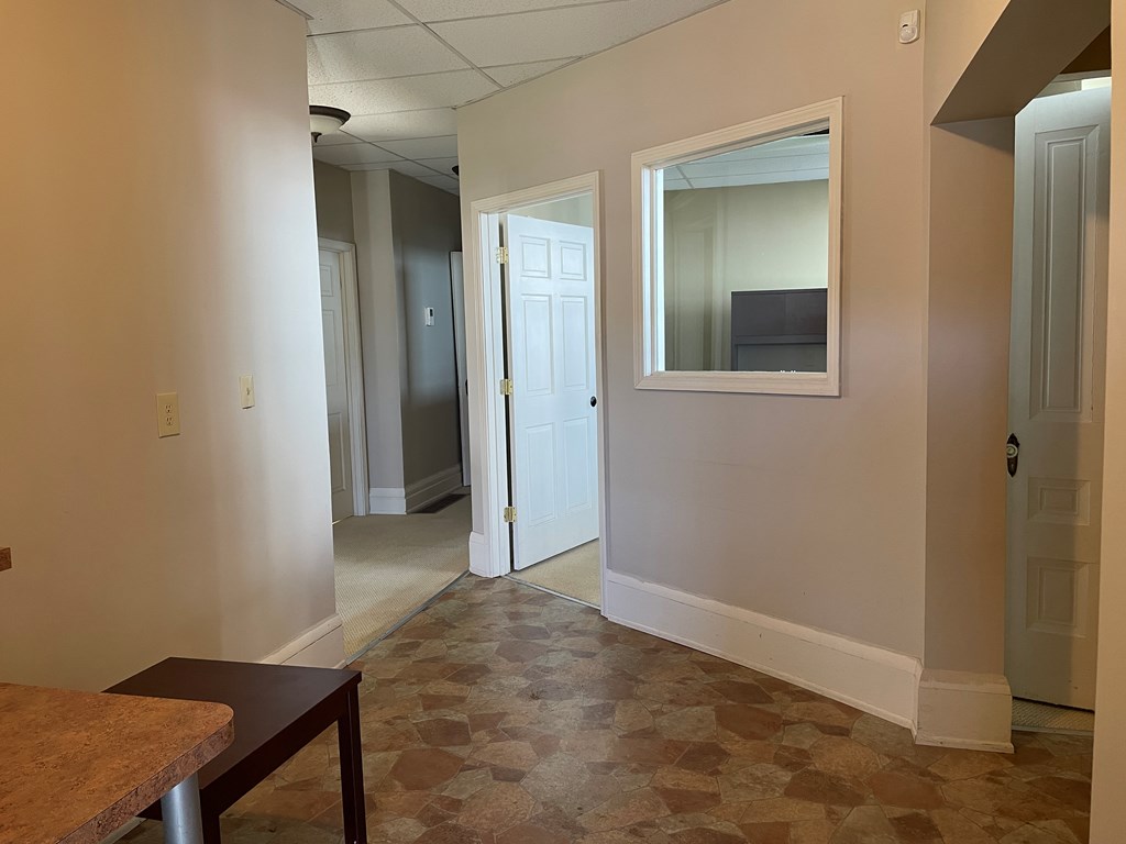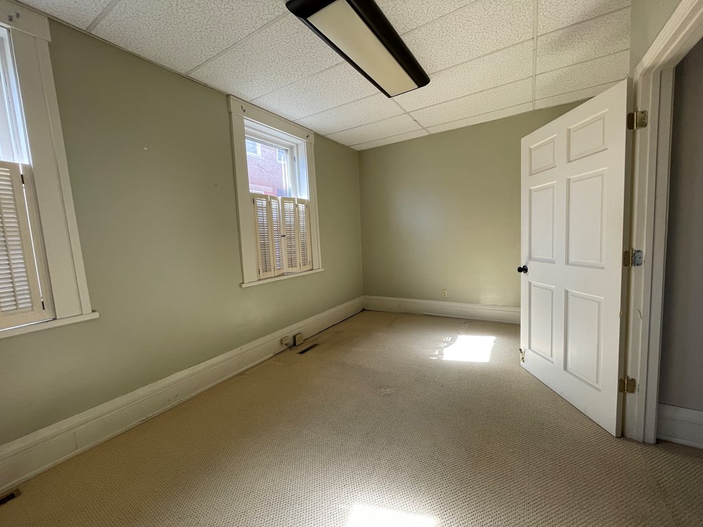 Commercial Rental on the 1st floor. This space includes 4 rooms and storage space, a kitchenette, a full bath, basement access, and a parking area. Water is paid by the owner. Unit rents for $1500/month and tenant pays all other utilities.