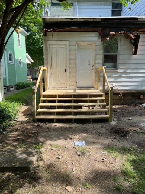 2 Units, 2 Bed, 1 Bath, refinished wood floors, baths completely redone, new plumbing, electrical. New A/C (2 Units) additional small 20 X 40 1 bedroom home in back with new roof, 3 car garage, large carport. Duplex units in lease through September with Community Action, $850 each. Stone, refrigerator, dishwasher stay with property. Pictures show before purchase and after construction/remodel.