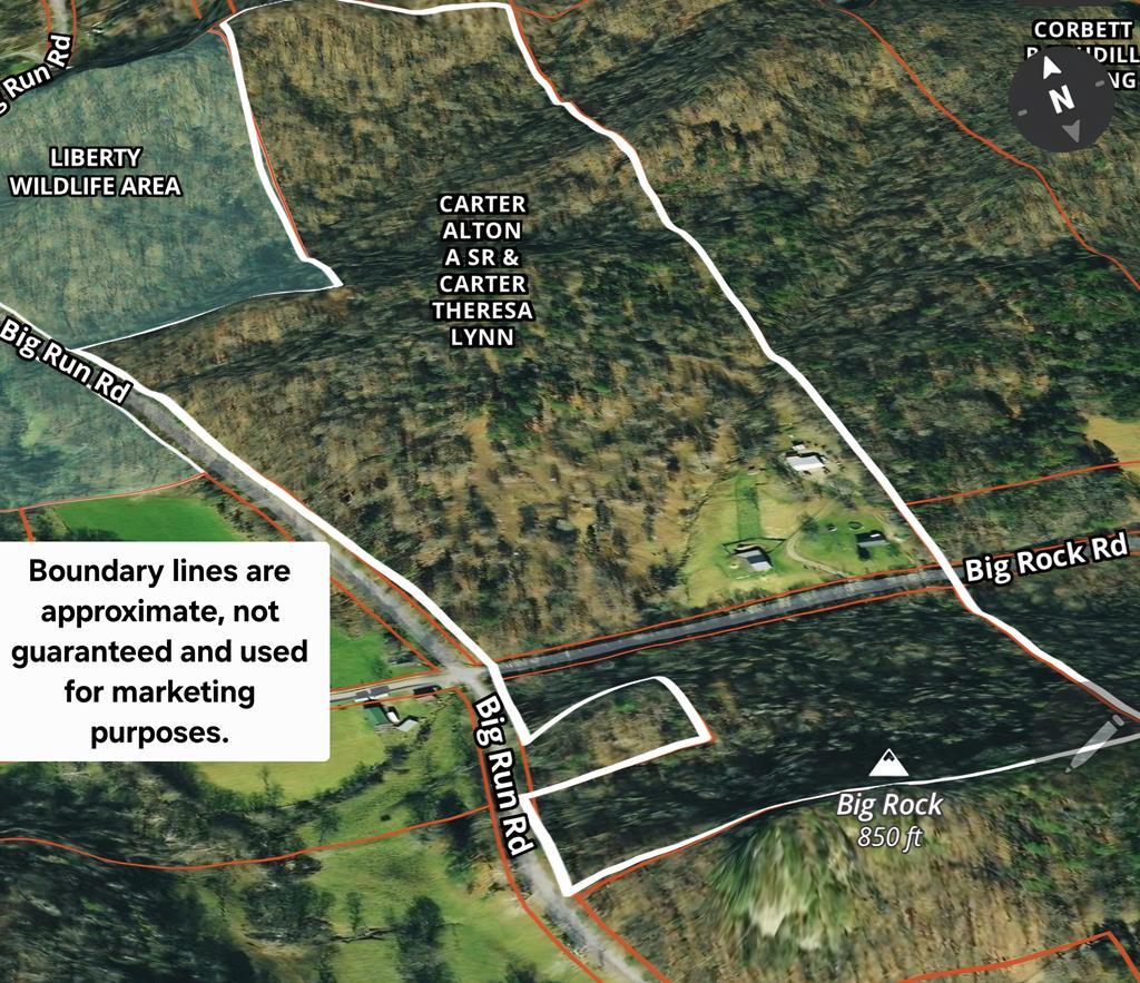 Discover the perfect blend of seclusion, functionality, and opportunity with this 58-acre retreat nestled in scenic Jackson County, OH. This versatile property adjoins Liberty State Wildlife Area & is ideal as a hunting getaway, mini farm, or peaceful full-time residence. Offering a 2 Bedroom Ranch Home in need of some renovation but offers a nice open floor plan. Pole Barn Garage with living quarters, 1 Bedroom style apartment with 2 car garage & additional equipment storage, which could make a great hunting cabin or AirBnB! Livestock barn with stalls, hay loft & lean, Previously pastured with electric fence and paddock. Sellers provide the property is improved with 5 public water taps, many springs & a private well. Abundant road frontage on both sides of Big Rock Road & on Big Run Road +/- 3,300 feet. Big Rock Lake is 1 mile away & adjoins the iconic land mark “Big Rock” . 5 mi. to US 35, 17 mi. to Chillicothe. All seller owned mineral rights transfer to buyer at closing.
