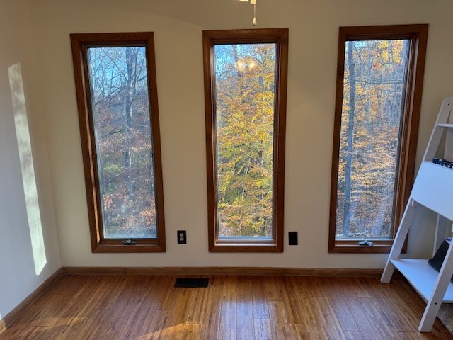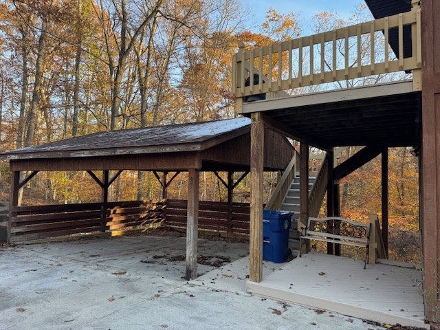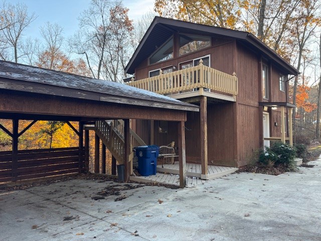 This contemporary and uniquely styled home was built in 1989 and is situated on the edge of town within the Oak Ridge subdivision. The property offers the charm of country living while providing the convenience of city utilities. Residents can enjoy a beautiful view of the wooded surroundings from the upstairs deck, creating a tranquil atmosphere and a strong connection with nature. Hardwood floors are featured throughout most of the home, lending warmth and elegance to the living spaces. The bathrooms are finished with durable and attractive ceramic tile. The home includes a full basement, offering additional space for storage or potential living areas. The property comprises three bedrooms and one and a half bathrooms, providing comfortable accommodations for family and guests. A covered carport with a concrete driveway ensures convenient and protected parking for residents.