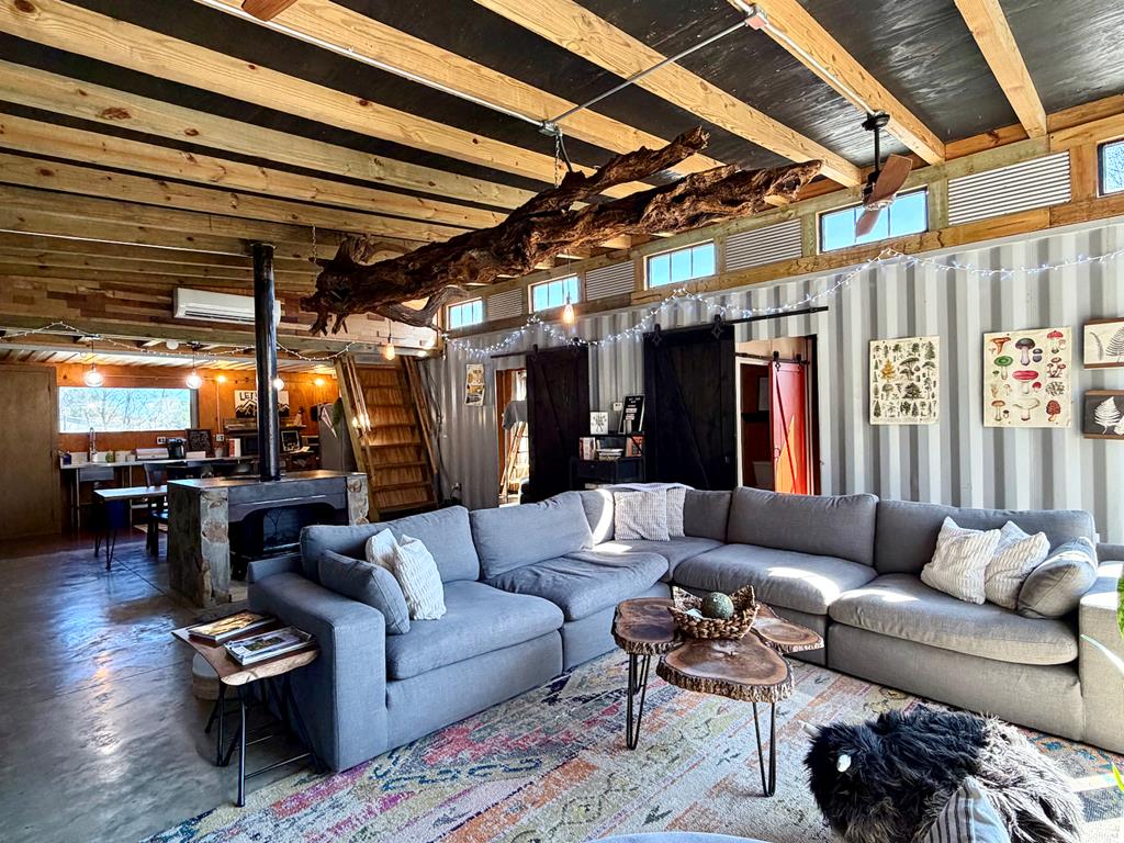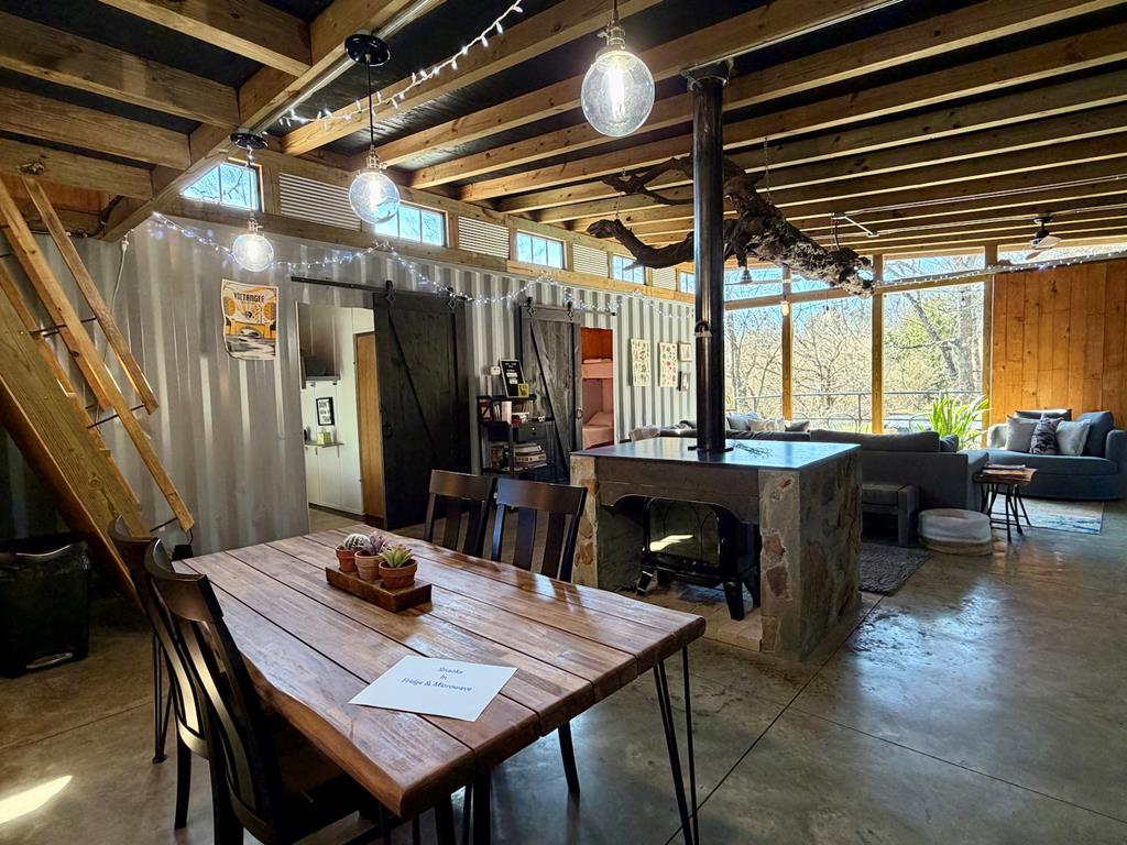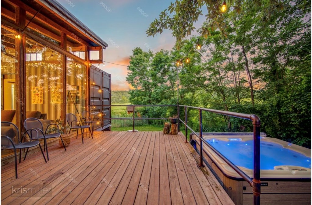 UNIQUE CONTAINER HOME RETREAT – This is more than a home, it is an experience! Crafted from repurposed shipping containers, blending modern design with natural surroundings. This 3-bedroom, 2-bath home features an open-concept kitchen, dining, and living area, along with a versatile loft space for additional sleeping, office, or recreation. A wall of floor-to-ceiling windows spans the rear of the home, filling the space with natural light and showcasing scenic wooded views, creating a seamless connection between indoor and outdoor living. Step outside to enjoy the private outdoor oasis with a spacious deck, hot tub, and entertaining area—perfect for relaxing or hosting guests. Surrounded by nature, the property also offers ample space for recreation. Currently operating as a successful short-term rental, this property is ideal as a turnkey investment, private residence, or weekend retreat! A rare and unforgettable property!