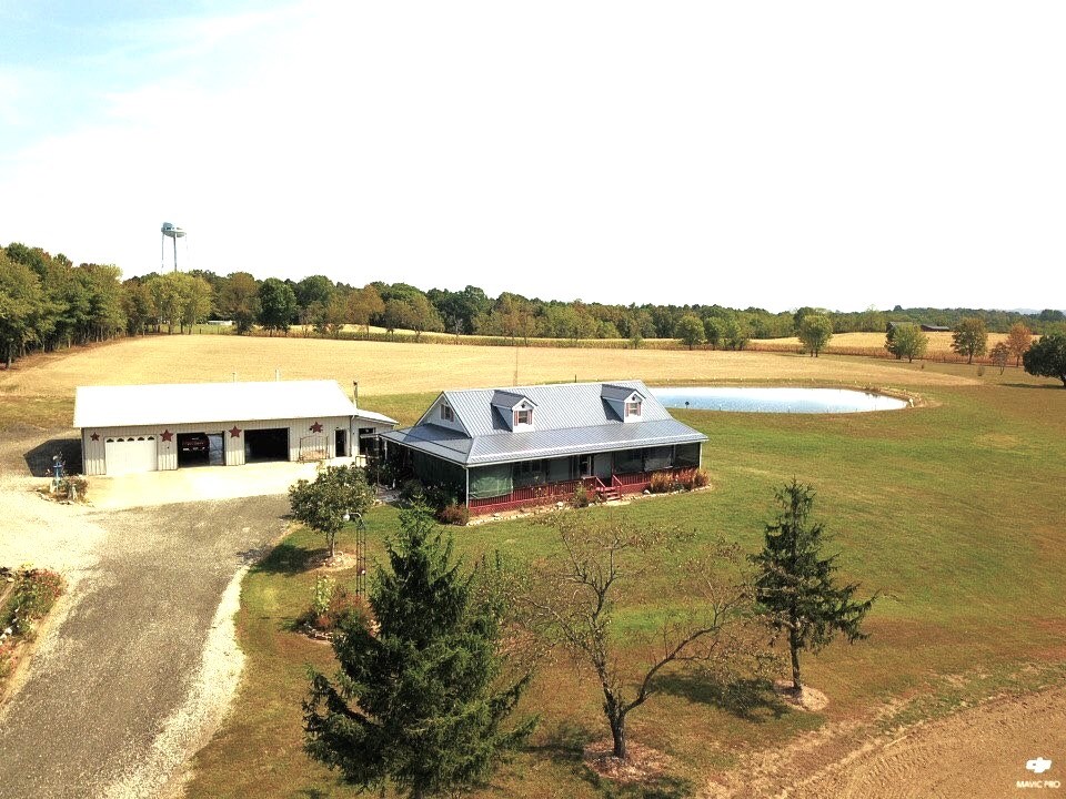Welcome to 10 beautifully maintained level acres! This Cape Cod style home has a nice size living room, kitchen, dining room, 4 bedrooms, 2 full baths, a full partially finished walk-out basement, and laundry on the main level as well as the basement level. The wraparound porch is enhanced by beautiful landscaping and makes a great place to enjoy. The heated 3-bay detached garage is a standout feature-complete with concrete flooring, electric, water, and an alternate heat source for the home via a well-maintained wood furnace. This garage is in immaculate condition and ready for your vehicles, workshop, or additional needs. Outside, the property truly shines, Multiple barns and buildings provide ample space for animals, hobbies, or storage. The pond is ideal for relaxing or fishing. This is a rare opportunity to own this lovingly cared for property with unlimited potential. Call today to make this exceptional property yours!