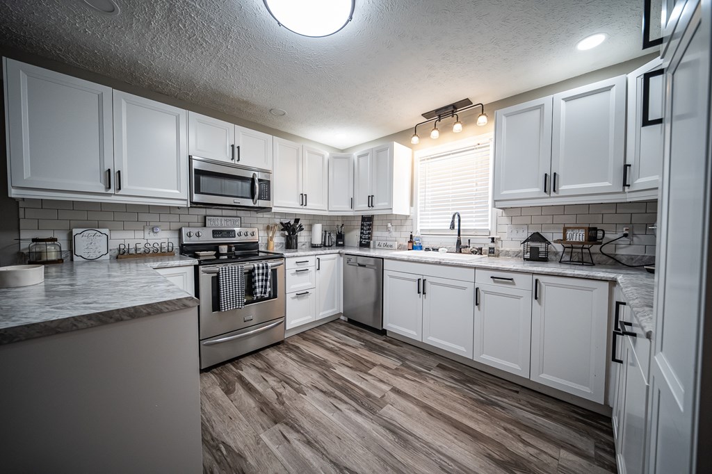 Immaculate 4 bedroom, 3 bath Cape Cod located in Rolling Meadows subdivision. This home has a fully remodeled kitchen and downstairs bath, new flooring throughout the entire downstairs as well as new double pane windows. The master suite bathroom also offers a jacuzzi tub with a separate stand up shower, There is a bonus room that can be used as a den with 2 brand new doors leading out to the back deck, which is perfect for relaxing with morning coffee or after a long days work. The attic has fresh blown insulation to help ensure heating and cooling efficiency. This home also offers 2 central air units, 1 for each level. There is also a new outbuilding for extra storage. This home is a must see! Book your private showing today!
