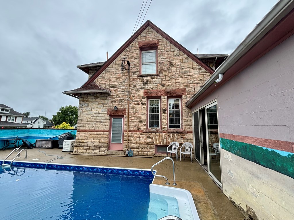 Own your own castle! New Roof & Gutters 2025! This stunning historical stone home, built in 1893, sits proudly on a corner lot and offers timeless charm blended with modern convenience. Featuring 4 spacious bedrooms and 5 baths, this grand residence boasts huge open rooms, soaring ceilings and a beautifully crafted wood staircase that captures the elegance of a bygone era, also features a second back stairway to the upper level. Enjoy the expansive Florida room, perfect for entertaining or relaxing and the full finished basement adds even more living space. Outside, an inground pool awaits with a concrete privacy wall, brand new heater, liner and steps for summer enjoyment. The property also includes a carriage house with a 3 car attached garage, a large blacktop parking area (formerly a tennis court) and a generator for peace of mind. With endless possibilities-bed and breakfast, Airbnb or your forever dream home-this one-of- property is a rare find!
