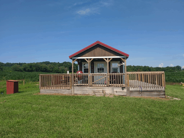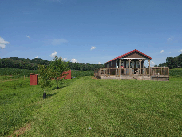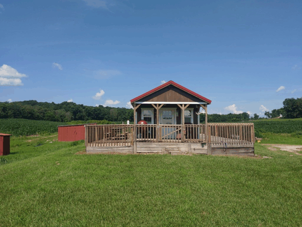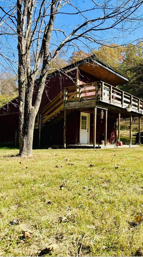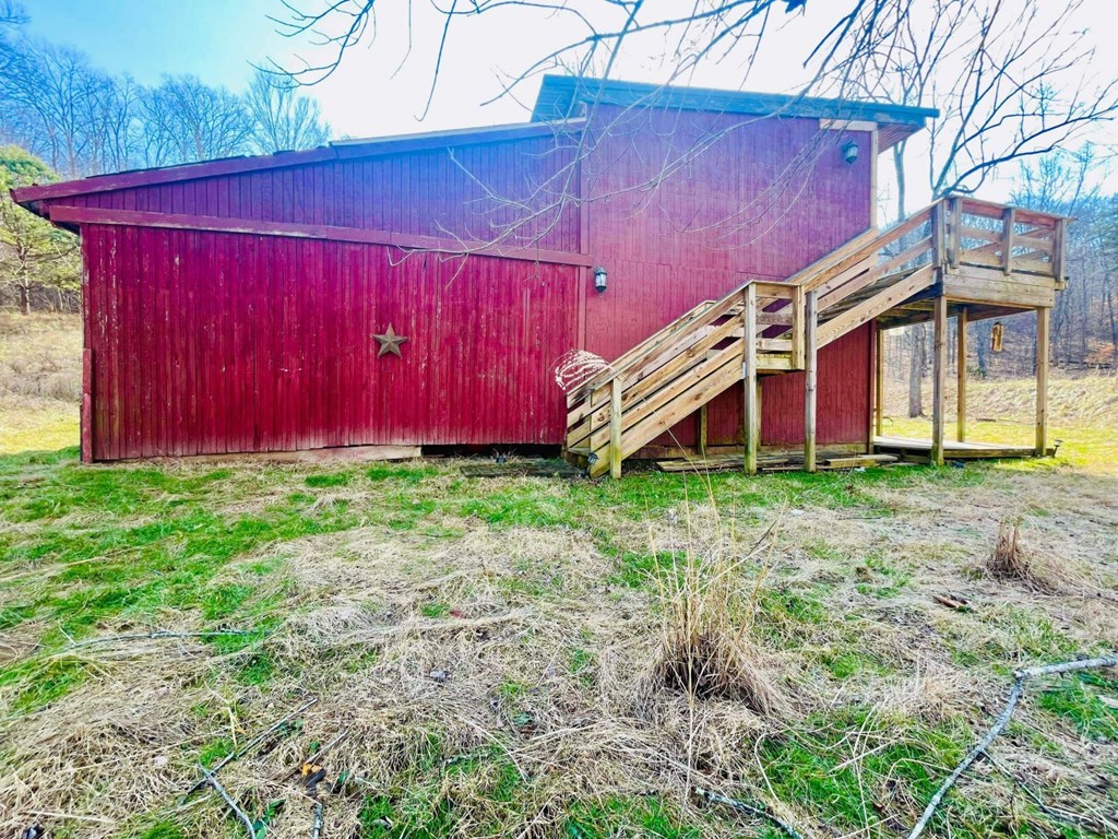 Welcome to this charming, primitive cabin nestled in the heart of nature on 5 beautiful acres. This cozy retreat offers a unique blend of simplicity and rustic charm. Step inside and be greeted by the inviting kitchenette and living space on the main floor, where you can create meals and relax. The covered porch is the perfect spot to sip your morning coffee while listening to the peaceful sounds of nature. As you ascend to the upstairs, you’ll discover a versatile bedroom/open living space that can be tailored to your needs. Imagine ending your day on the deck, watching the colors of the sky transform as the sun sets beyond the horizon. Featuring a 5,000 watt/10 HP generator and two 30 amp electric boxes, convenience is at your fingertips. Located just minutes away for Rio Grande and the renowned Bob Evans Farm Festival, this property offers a serene and idyllic setting for your weekend getaway, airbnb, or an opportunity for hunters to relax and unwind after a day of pursuing their pa