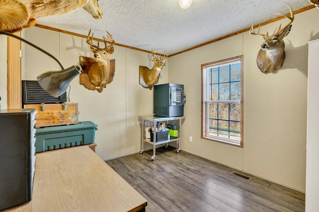 Welcome to 30067 Garrett Ridge Rd! Well maintained 3 bed, 2 bath home on 2.15 acres featuring an open-concept living, kitchen, and dining area. Kitchen is equipped with stainless steel appliances, large kitchen island and a nice size pantry. Laundry room off dining area for added convenience. Spacious primary suite with shower, large vanity, and closet. The property includes a 24×40 detached, insulated garage built in 2015 with concrete floors, propane heat, attic storage, wooden workbenches, 220 electric, and plenty of space for hobbies or projects. Enjoy the outdoors on the large covered porch, in the yard by the fire pit, or spend time at your own pond, complete with a new dock and stocked with bass, bluegill, and catfish-perfect for relaxing or fishing! New furnace and AC installed in 2018. New metal roof installed 2021. Approximately 2.2 miles off SR-50. A must see! Private Remarks: