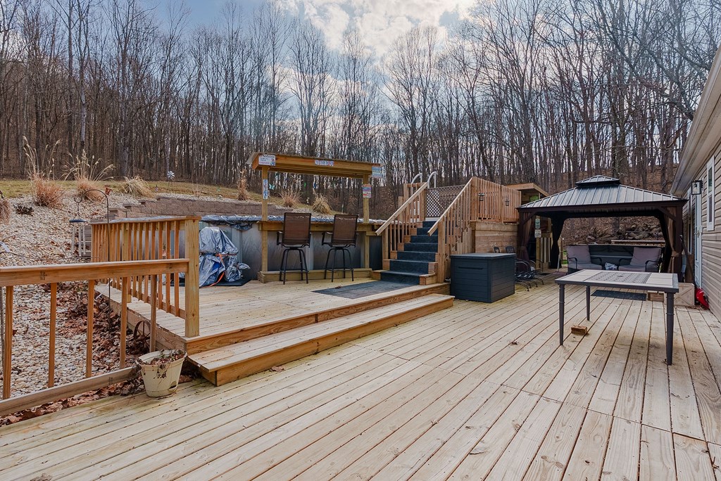 Looking for a property in a quiet setting in the country with over 7 acres of land?? Look no further! This manufactured home, brought brand new in 2024, has 3 bedrooms and 2 full baths with amazing outside deck work. This area has multiple decks multiple decks that include a hot tub, outdoor bar and kitchen and an above ground pool. Inside you will find a specious open floor plan that includes a large kitchen with island, dining room and living room. All appliances are brand new as well. The master bedroom also boasts a roomy bathroom that includes a large walk in closet. A detached 2 car garage and a 2nd outbuilding/carport provides plenty of space for cars, SUVs, mowers etc. as well as a gazebo for lounging and a playhouse for the little ones. The land also provides an excellent area for hunting, This property definitely needs to be seen to be fully appreciated. Don’t hesitate!! Schedule your private showing today!