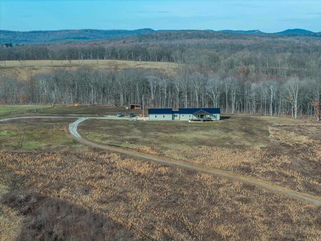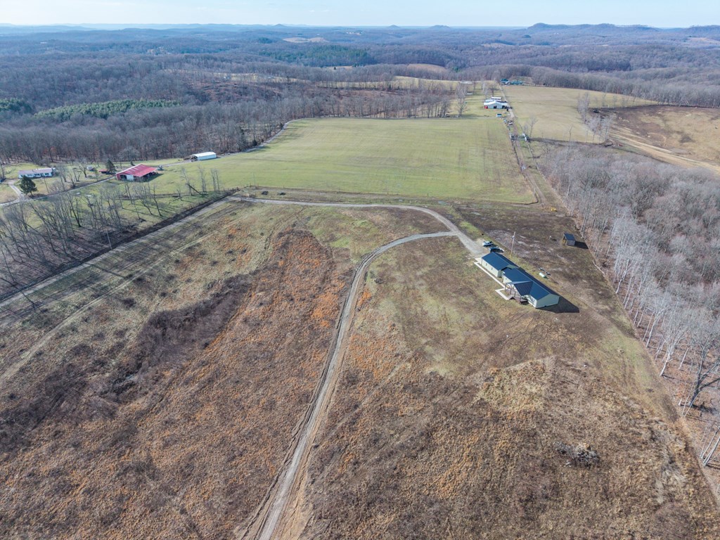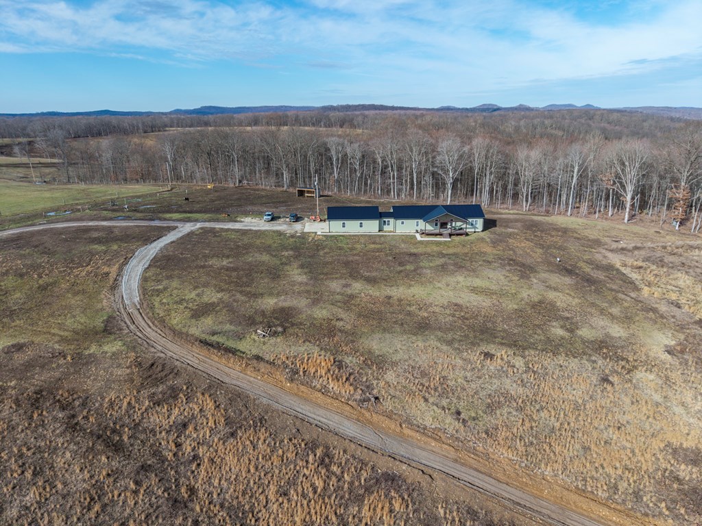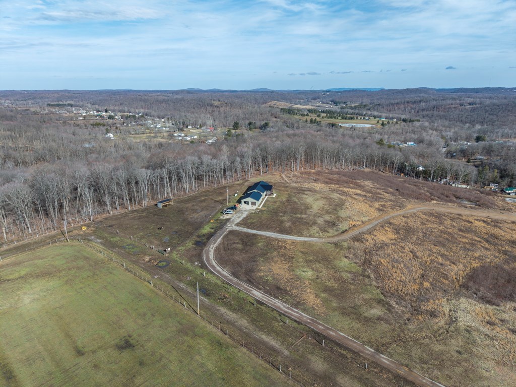 Coffee on the front porch with the sunrise…evening glass of wine with the sunset! Enjoy expansive views for the covered front porch of this newer home situated on 13.6 acres. Aprx 3072 sq ft house boasting 3/4 bedroom and 2 full baths. Generous living has cathedral ceiling and large window for a great view. Split side bedrooms. Very spacious laundry area leading to attached garage. Great space for pets and horses. Make this you new Haven!