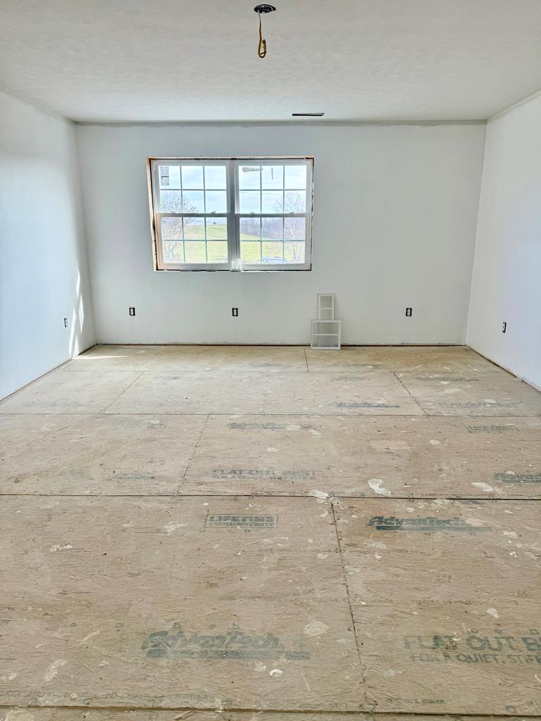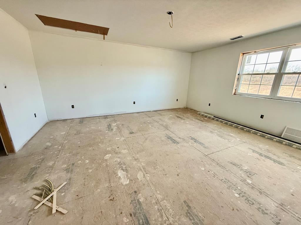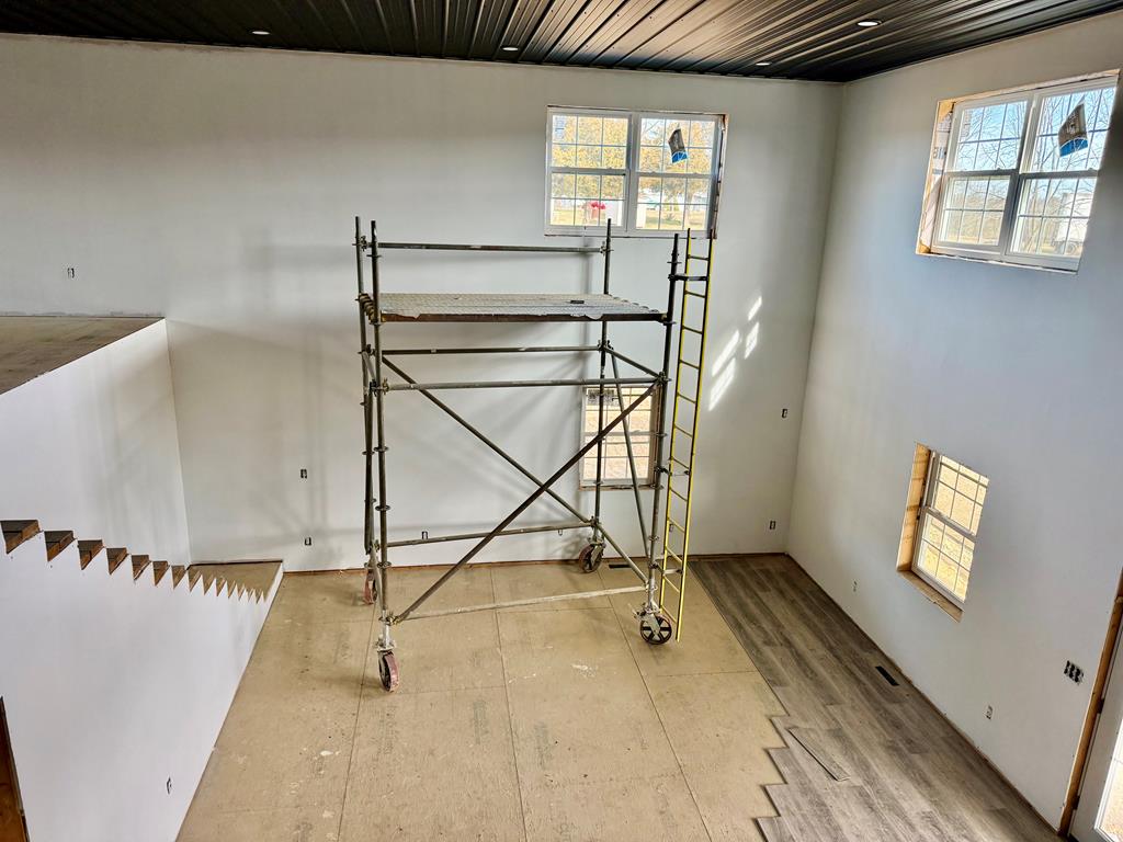 Blank Canvas New Build on 2.3 Acres – Bring Your Vision Opportunity awaits with this partially completed new construction built in 2025, offering approximately 3,400 sq ft of potential living space on 2.3 acres. This home is ideal for a buyer utilizing a construction or renovation loan to finish and customize to their style. Major systems are already in place, including electric completed, PEX plumbing throughout, and two HVAC units installed. The open-concept layout features large ceilings, spacious bedrooms with walk-in closets, and a generous pantry designed for functionality. Vinyl plank flooring has been started in the kitchen, with additional flooring already on site. A covered porch is framed and ready for concrete to be poured. Upstairs, a large recreational room offers flexible space and could easily be converted into two additional bedrooms, home office space, or bonus living area. Outside, the property includes an impressive 36 x 48 concrete garage, providing ample room