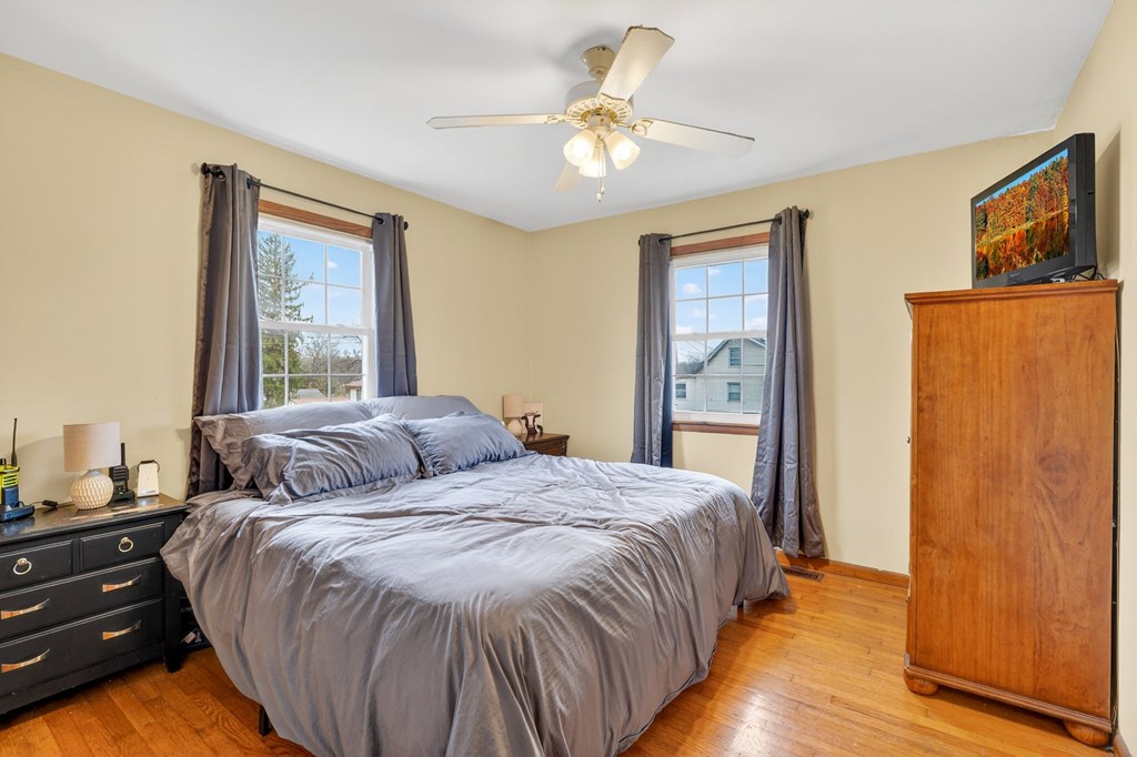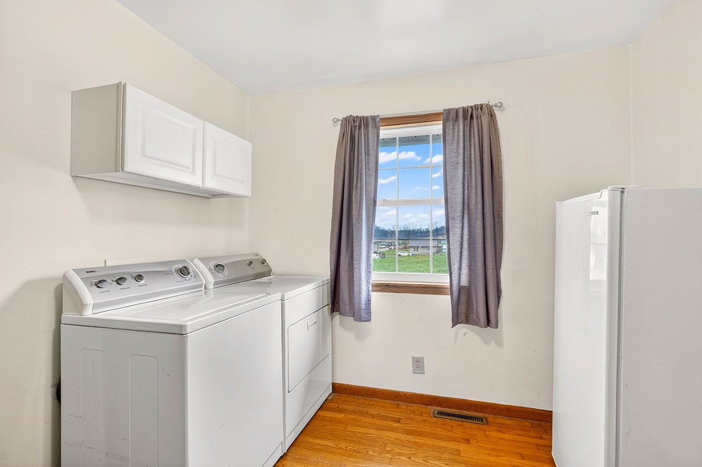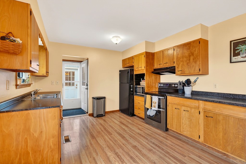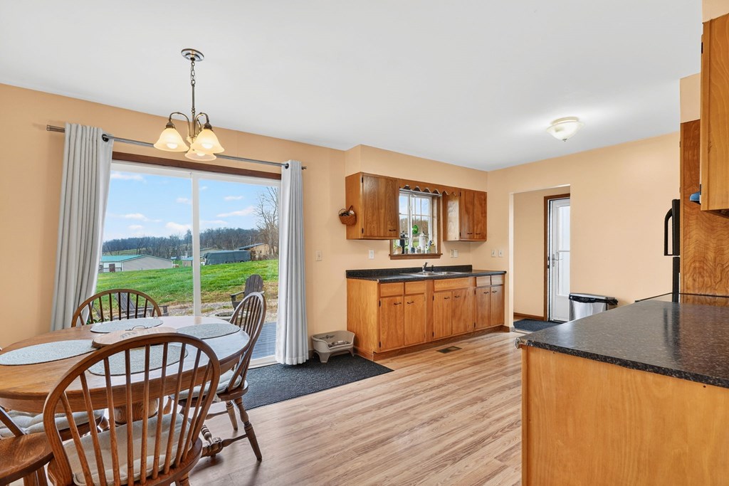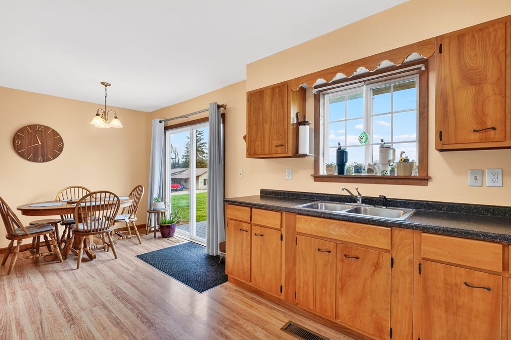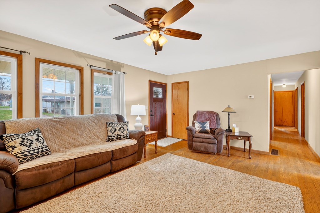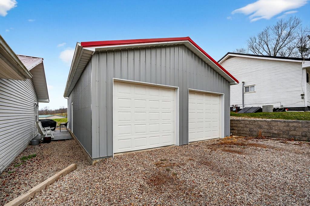 Well-maintained 4-bedroom, 2-bath home situated on a large desirable corner lot, featuring a full basement, a newer 24′ x 40′ detached metal pole barn garage and extra city utility access. Inside, you’ll find beautiful original hardwood floors and a large eat-in kitchen with a sliding glass door leading directly to the back patio, perfect for entertaining. The home features four bedrooms, with the fourth currently set up as a main-floor laundry room. Seller is willing to move laundry hookups back to the basement if preferred. A full basement offers a full bath, additional storage, and expansion potential. Major updates to ensure peace of mind, including: 200-amp electric service (2025) Metal roof, gutters, windows, vinyl siding, exterior doors, covered concrete porch & wooden back porch (2020) Garage, retaining wall, and landscaping (2021) New gas furnace and hot water tank (2019). This property blends modern updates with classic charm-move-in ready and built to last.