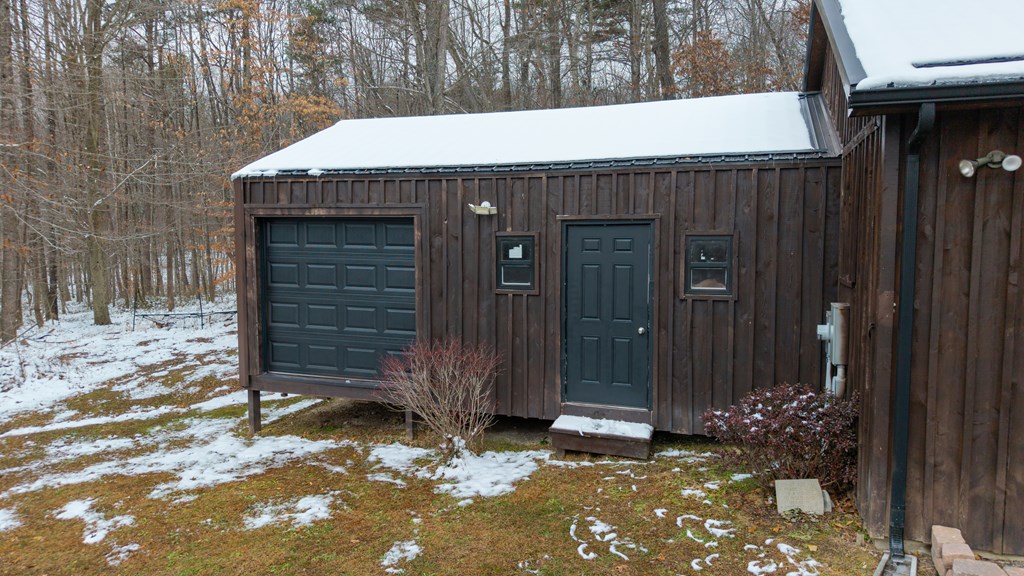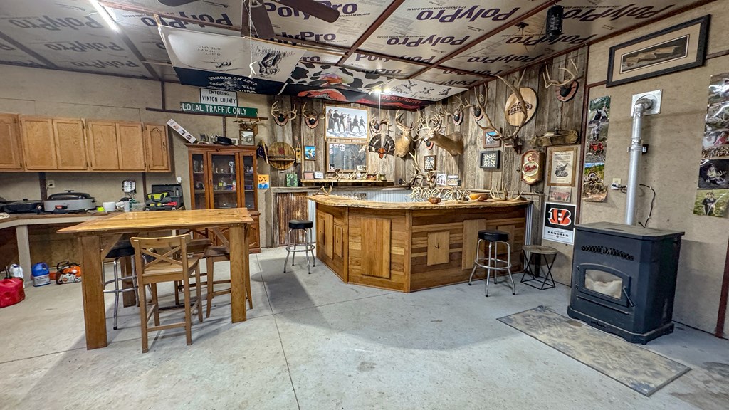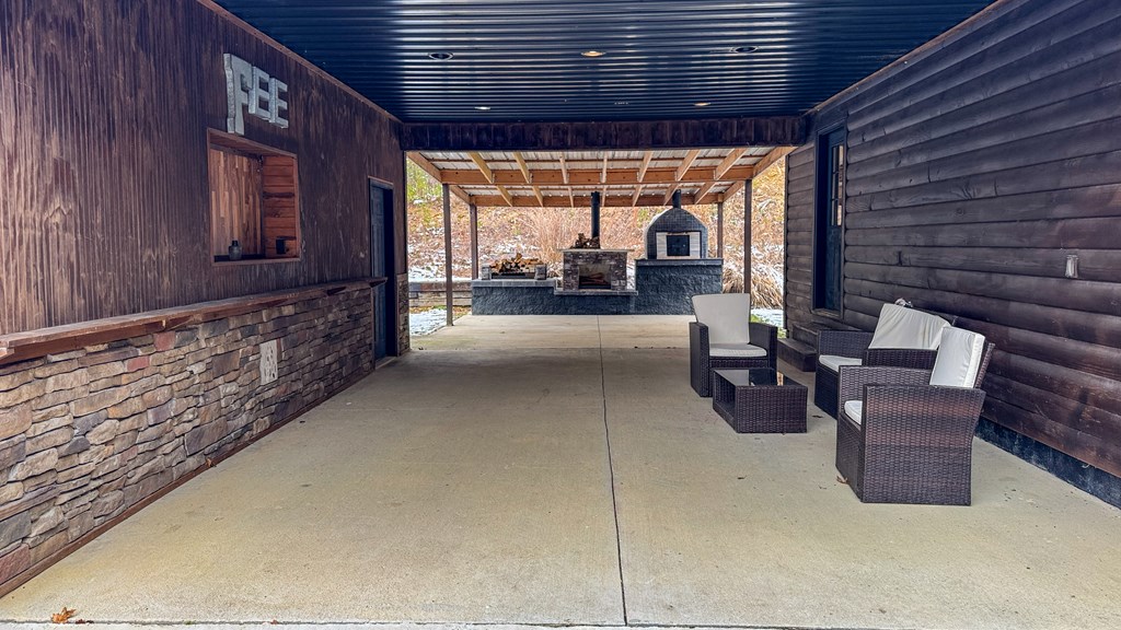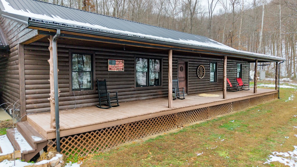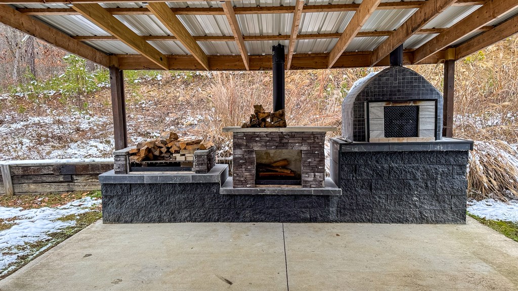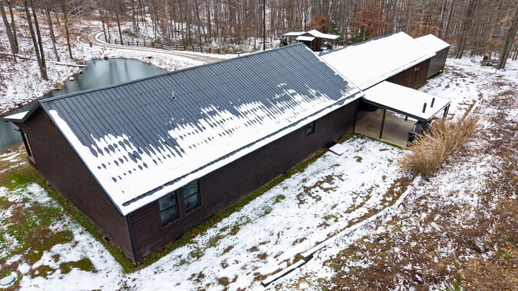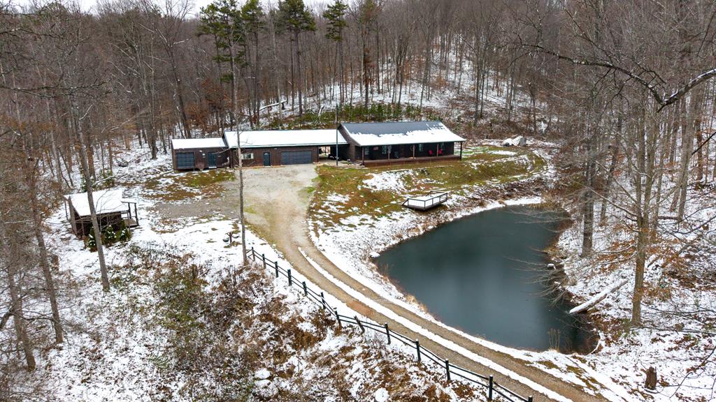 Built in 2017, this well-maintained 2,040 sq ft ranch-style home offers a private country setting on 11.446 acres. The property features wood siding, a large front porch overlooking a stocked pond, and an open floorplan with 3 bedrooms and 2 full bathrooms. The spacious kitchen, dining, and living areas provide an ideal layout for everyday living or entertaining. Outdoor amenities include a rear covered patio equipped with a built-in brick pizza oven, outdoor fireplace, and grill. Additional improvements include a 24′ x 33′ finished garage with a bar area, perfect for gatherings, along with two additional storage buildings offering ample space for equipment and supplies. This property is designed for hosting, relaxing, and enjoying peaceful surroundings. Schedule your showing today!