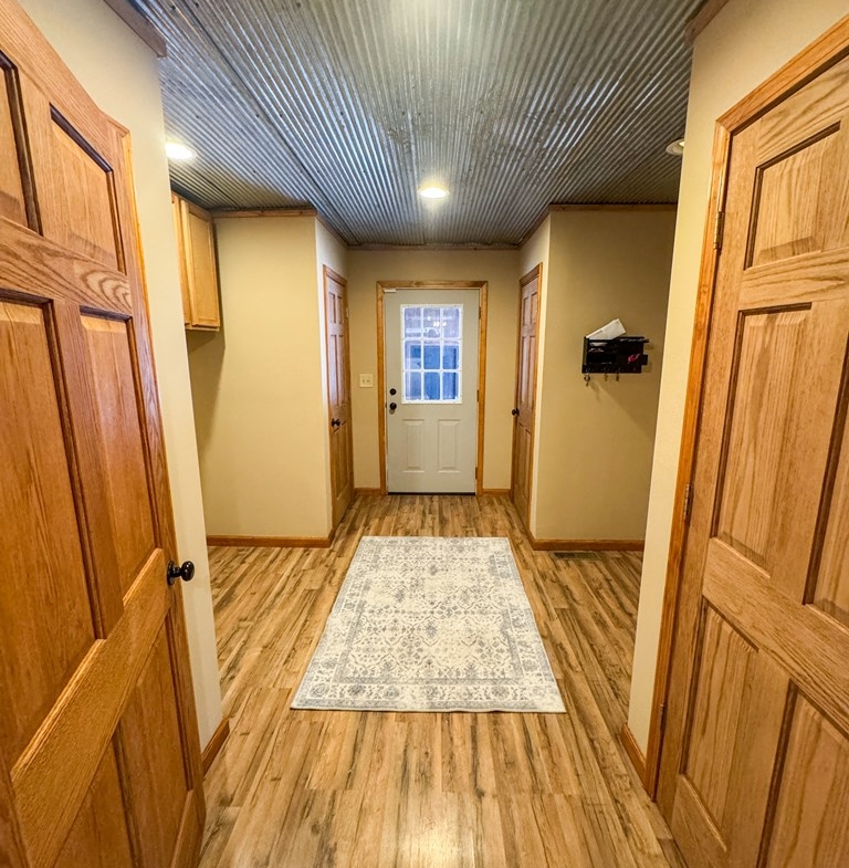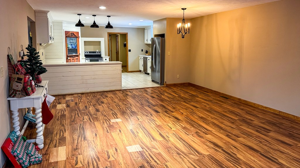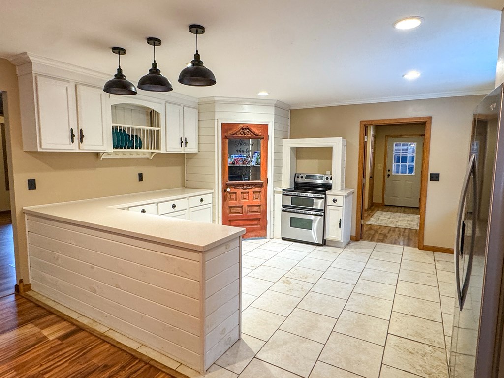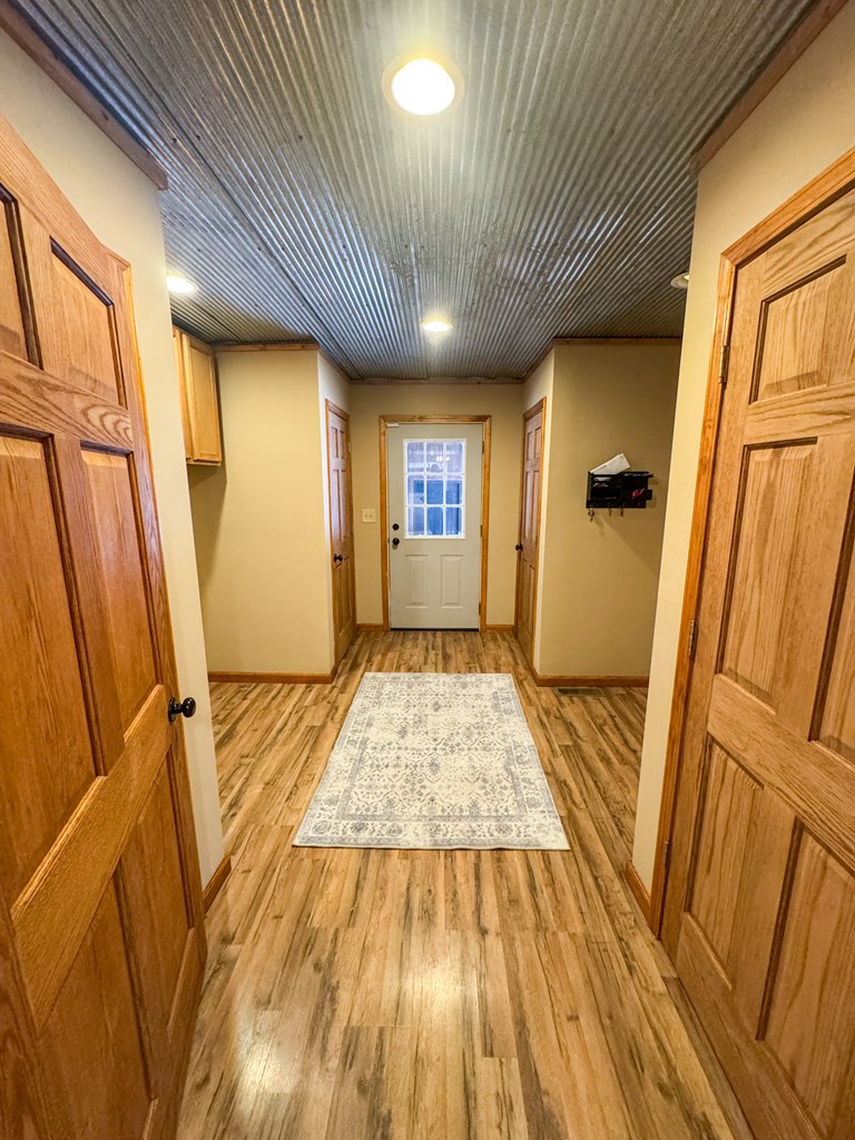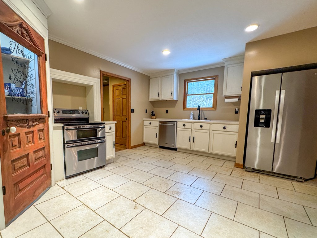 Built in 2017, this well-maintained 2,040 sq ft ranch-style home offers a private country setting on 11.446 acres. The property features wood siding, a large front porch overlooking a stocked pond, and an open floorplan with 3 bedrooms and 2 full bathrooms. The spacious kitchen, dining, and living areas provide an ideal layout for everyday living or entertaining. Outdoor amenities include a rear covered patio equipped with a built-in brick pizza oven, outdoor fireplace, and grill. Additional improvements include a 24′ x 33′ finished garage with a bar area, perfect for gatherings, along with two additional storage buildings offering ample space for equipment and supplies. This property is designed for hosting, relaxing, and enjoying peaceful surroundings. Schedule your showing today!