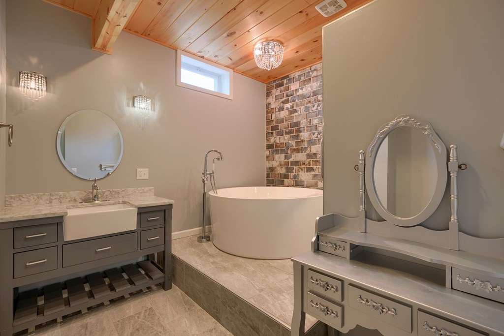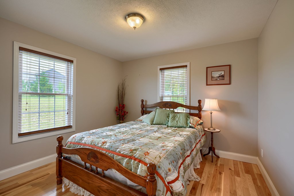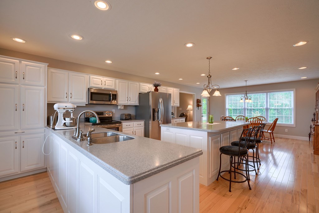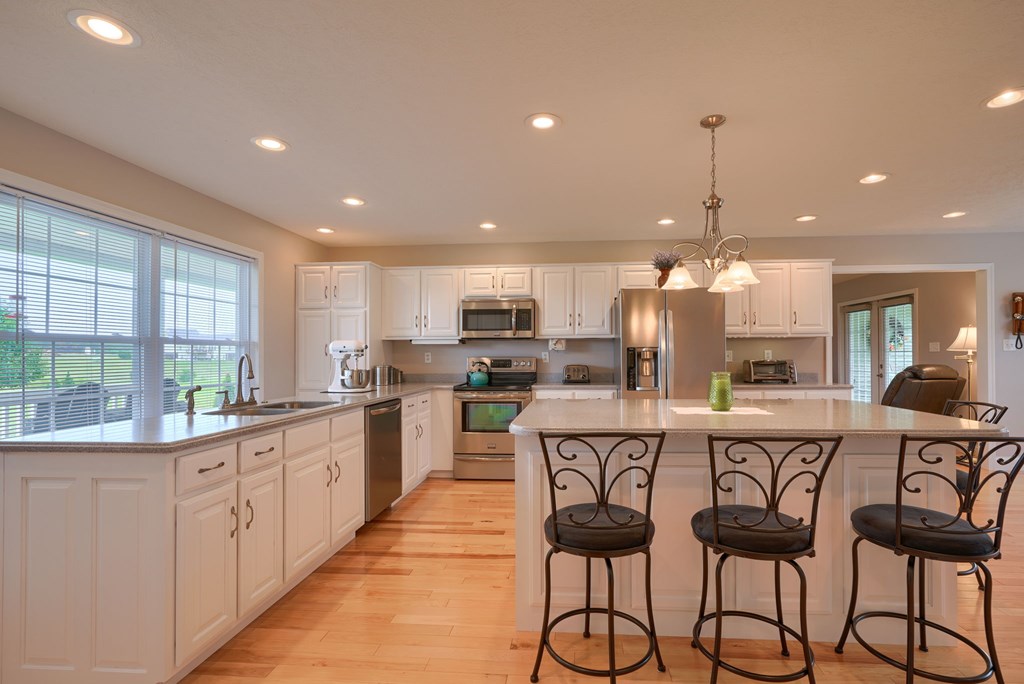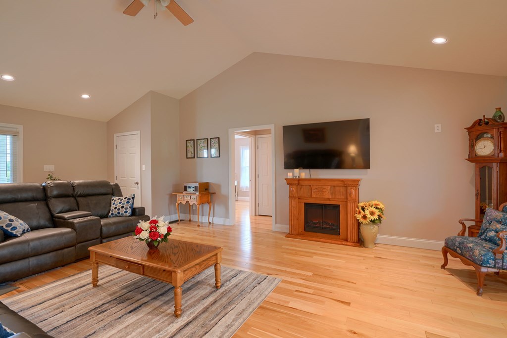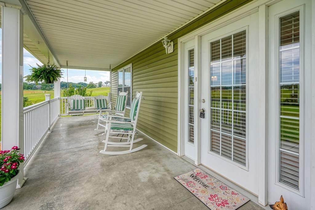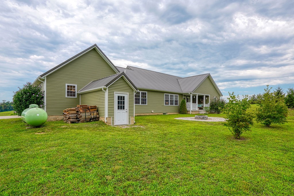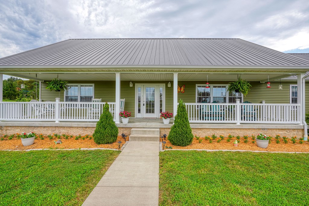 Welcome to 85 Liberty Lane in Mountain Meadow Estates. This spectacular one-level home, completed in 2016, features 2 separate living spaces perfect for extended family. The main home, with hickory flooring, offers 3 bedrooms, 2.5 baths, a spacious living room, a dining room open to an Amish custom-built kitchen with a large eat-in island and pantry, all appliances included. The primary bathroom boasts a double vanity, tub, and shower. A bonus office above the garage adds extra space. The attached 2-car garage leads to a 9-foot finished basement with another top-of-the-line kitchen, bedroom, dining room, laundry, office, and bathroom with soaking tub and shower, plus a private exit. The detached 28×48 3-car garage with attic storage accommodates extra vehicles and outdoor hobbies. Enjoy sunset views from the large covered front porch and wooded views from the back porch, extending to the fire pit and fenced-in raised gardens. Surrounded by 3.581 acres of mature landscaping, a must-see!