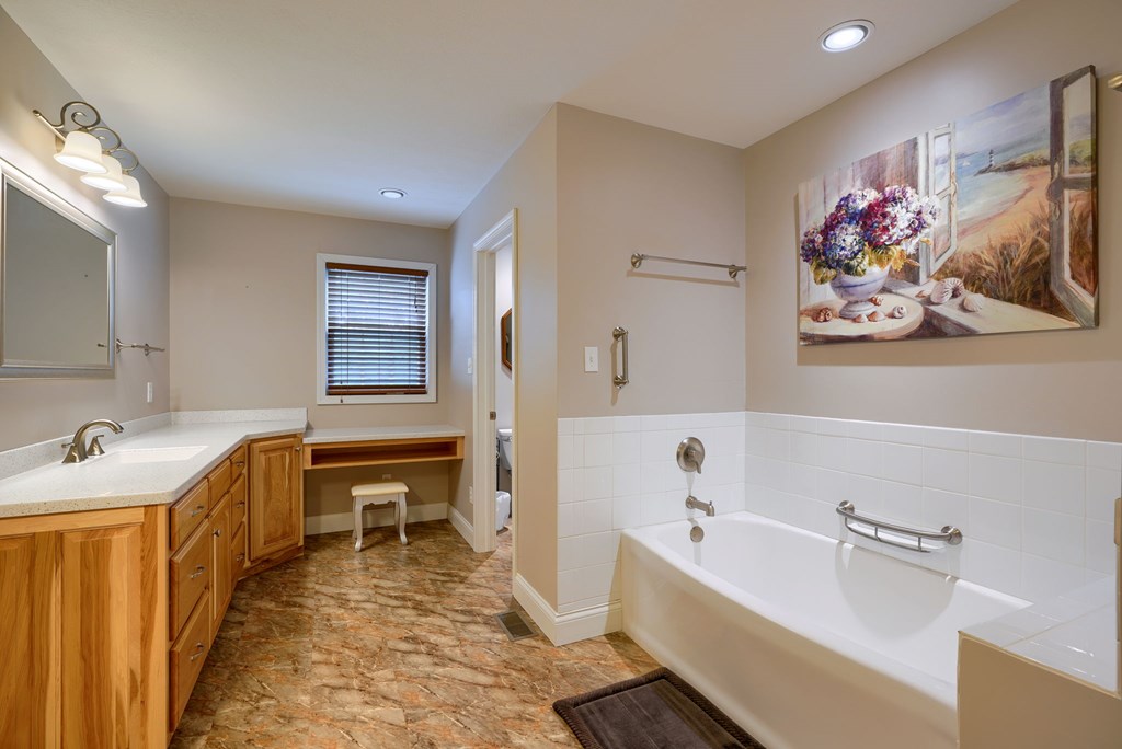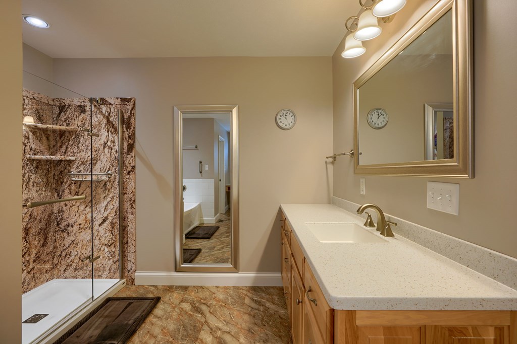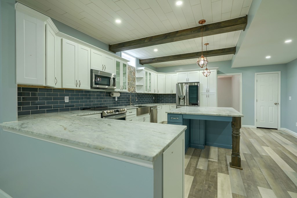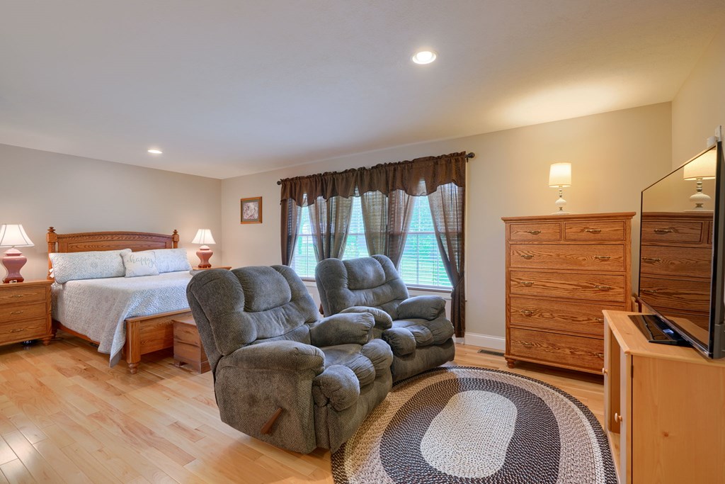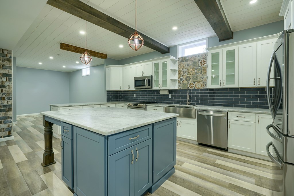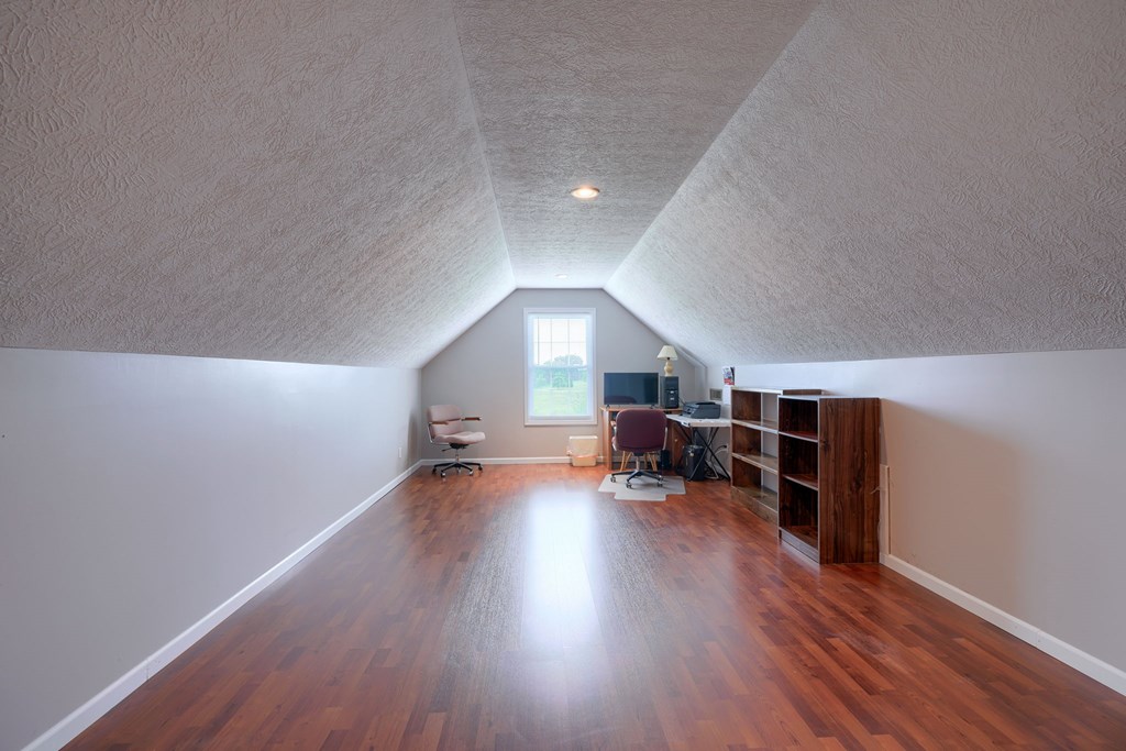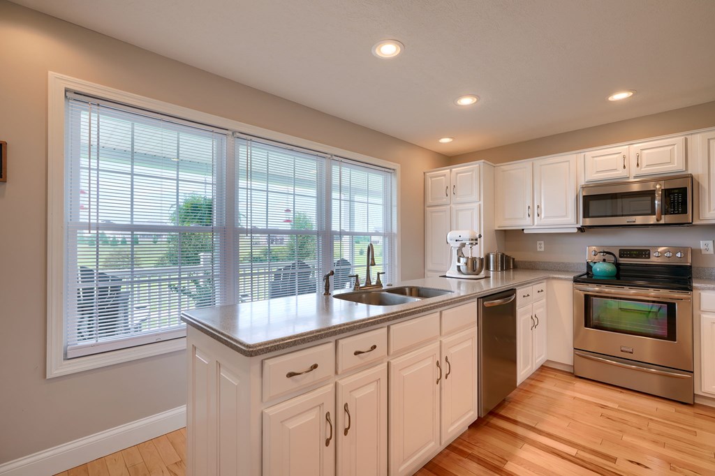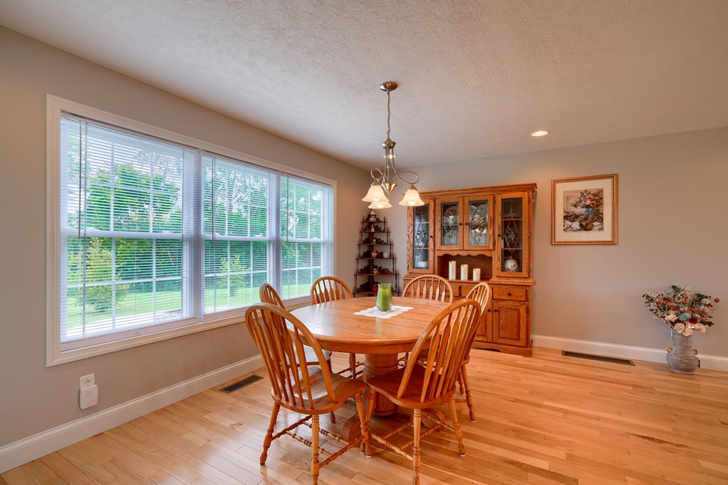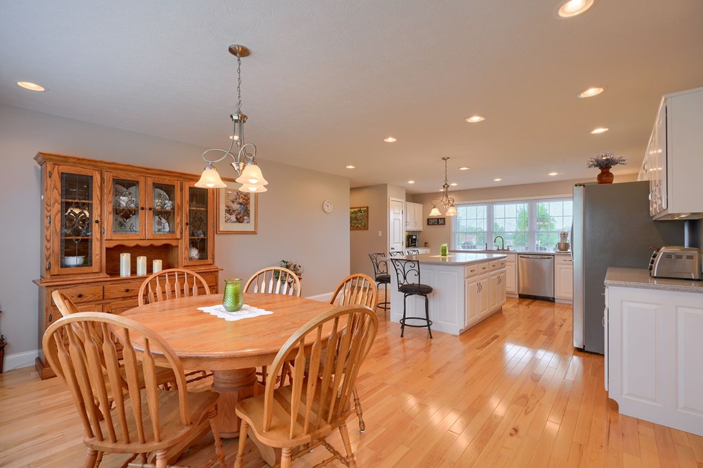 Welcome to 85 Liberty Lane in Mountain Meadow Estates. This spectacular one-level home, completed in 2016, features 2 separate living spaces perfect for extended family. The main home, with hickory flooring, offers 3 bedrooms, 2.5 baths, a spacious living room, a dining room open to an Amish custom-built kitchen with a large eat-in island and pantry, all appliances included. The primary bathroom boasts a double vanity, tub, and shower. A bonus office above the garage adds extra space. The attached 2-car garage leads to a 9-foot finished basement with another top-of-the-line kitchen, bedroom, dining room, laundry, office, and bathroom with soaking tub and shower, plus a private exit. The detached 28×48 3-car garage with attic storage accommodates extra vehicles and outdoor hobbies. Enjoy sunset views from the large covered front porch and wooded views from the back porch, extending to the fire pit and fenced-in raised gardens. Surrounded by 3.581 acres of mature landscaping, a must-see!