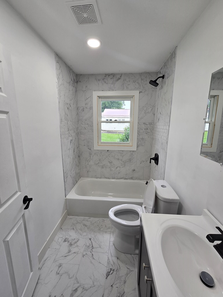Move-In Ready Ranch with 3-Bay Garage & Extra Lot! Beautifully renovated with all-new electric, plumbing, ductless HVAC, flooring, trim, and doors. Enjoy a remodeled kitchen, updated bath, and spacious mudroom with laundry hookups. Durable metal roof adds lasting value. Outside, a standout 3-bay garage with 10-ft ceilings, concrete floor, and full utilities is perfect for storage, hobbies, or a workshop. Bonus storage shed plus an extra lot for yard space, privacy, or future potential! This house will qualify for all loan types and offers IMMEDIATE POSSESSION!