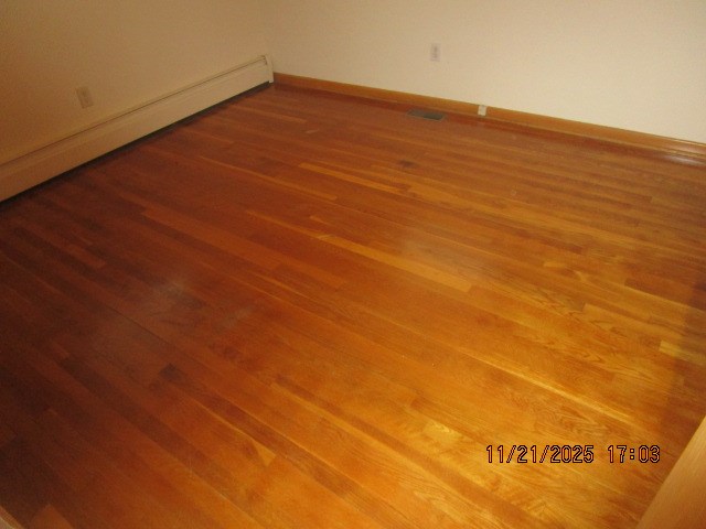 Nice clean ranch with a full basement with poured walls. Basement could easily be finished. Large living room-has an eat in kitchen-large bathroom with double sinks. Beautiful wood floors in the living room and bedrooms. Large fenced yard with gate access covered patio. Room sizes are approx.