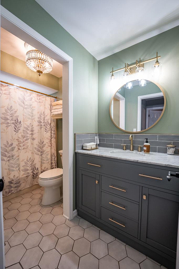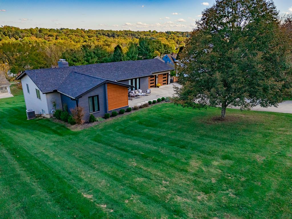 Welcome to a reimagined Mid-Century Modern Ranch home located in the desirable Hesswood Hills neighborhood. This four-bedroom, three-bath home offering over 3,000 sq feet including a full basement all beautifully refreshed by its designer/owner with warmth and sophistication. The kitchen flows into a dinning area with a classic brick fireplace framed on both sides with built-in cabinets, island for additional workspace. Double sliding glass doors lead to an expansive deck with scenic views overlooking rolling hills . The main floor provides a serene primary suite with walk-in closet and private bath. Two additional bedrooms and full bath. The bright lower level includes a large entertainment room with a second fireplace , new bedroom and walk-in closet and third full bathroom and new laundry room . Outdoors, enjoy a stamped concrete porch, covered porches on both levels , 30’x30′ lighted basketball court. Move-in ready – your home for the holidays! *SEE FULL LIST OF IMPROVEMENTS